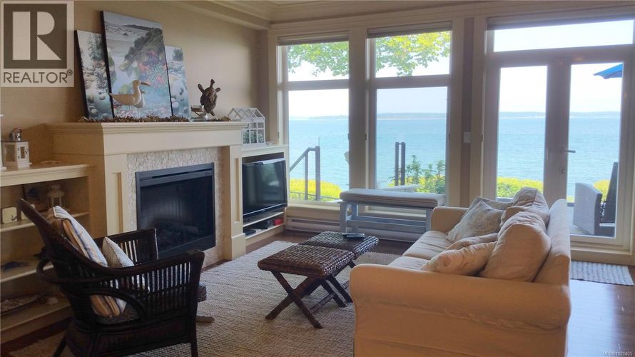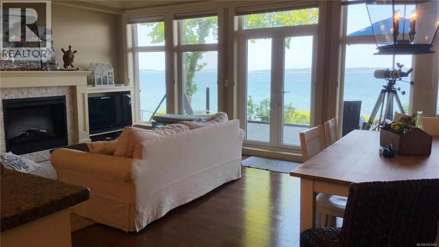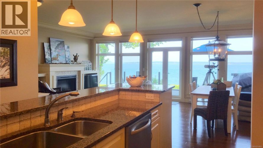 EXCEPTIONAL WATERFRONT CONDO JUST MINUTES FROM DOWNTOWN SIDNEY, THE AIRPORT, AND BC FERRIES. This beautifully crafted home features an expansive floorplan, high-end custom finishes, and vibrant coastal surroundings that create an unmatched lifestyle opportunity. Step onto your spacious private patio and enjoy direct access to the beach. Inside, the gourmet kitchen includes stainless steel appliances, granite countertops, and an open-concept layout ideal for hosting. The large primary bedroom captures stunning sunrises and offers a luxurious ensuite with heated floors for year-round comfort. A second bedroom features its own private deck and convenient access to a full bathroom, making it perfect for guests or a home office. With 2 secure parking stalls, EV Charging, premium construction, and meticulously maintained spaces, this residence offers an exceptional chance to experience refined waterfront living at its finest. (id:26452)