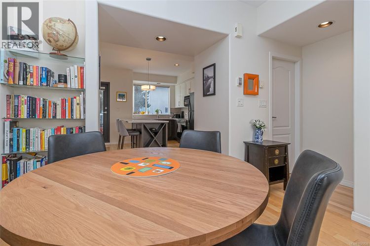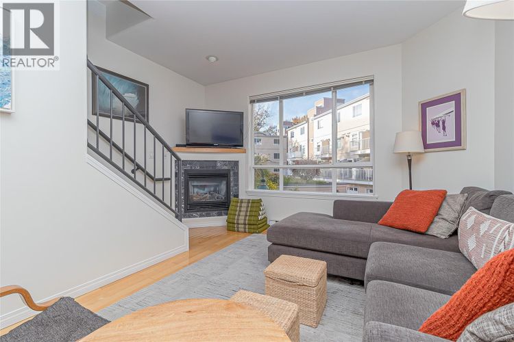 *Open House Sat, March 7, 2-3pm* Bright and Upbeat 3-Bedroom, 3-Bath Townhome in James Bay. Ideally located along Dallas Road in the quieter part of James Bay, this beautifully maintained townhome is just steps from the sea, beaches, parks, Fisherman’s Wharf, the Ogden Point Breakwater, the Inner Harbour, and Downtown Victoria. The entry level features an oversized single-car garage and a versatile office/den or bedroom complete with a built-in Murphy bed. From here, enjoy access to the complex’s charming courtyard filled with mature plantings, gardens, pergolas, a picnic area, and plenty of additional parking. With 9-foot ceilings the main level boasts a stunning newly renovated kitchen with engineered maple flooring, quartz countertops, timeless cabinetry, stainless steel appliances, wine storage, and a large, functional island. The south-facing deck off the kitchen is perfect for soaking up the sun and overlooking the courtyard greenery and living rooftop gardens. The bright and spacious living/dining area features expansive windows, an open layout, and a cozy gas fireplace, perfect for relaxing or entertaining. The serene upper level includes laundry, two full bathrooms, and two bedrooms, including the luxurious and spacious primary suite that easily accommodates a king-sized bed. The spa-inspired ensuite offers double sinks, a soaker tub, a separate shower, and two skylights that flood the space with natural light. Enjoy the very best of coastal living in this gem of a home, part of one of James Bay’s most desirable and well-managed oceanside townhome communities. (id:26452)