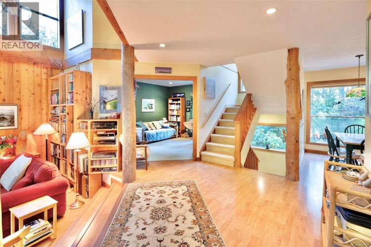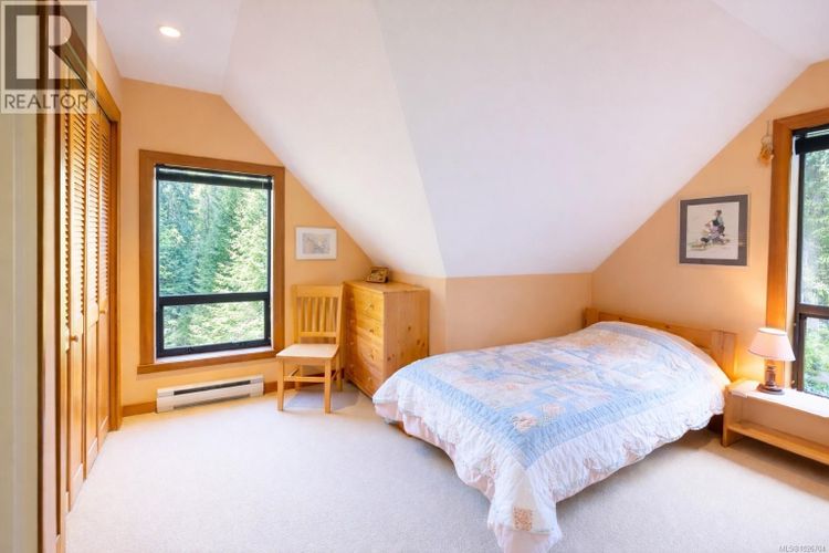 Welcome to 1290 Lynn Road, a charming character home in the heart of the North Chesterman neighbourhood. This beautifully maintained 3 bedroom residence blends timeless architectural details with functional family living on a picturesque 0.41 acre private lot. A spacious light-filled great room welcomes you into this home, centred around a river rock fireplace crafted with locally sourced stones. The main floor also features the kitchen & dining areas, den, full bathroom and laundry. Upstairs you will find two bedrooms plus 4 piece bathroom with soaker tub. The spacious primary bedroom boasts a walk in closet and west facing balcony, a perfect perch to enjoy coastal sunsets. Further up is a charming attic room, the ''Crow's Nest'', complete with window seat and skylights. The lower level features a third bedroom or flex room, rec room with toilet, large storage room, workshop and cold room. Stepping outside, expansive decks in both back and front ensure the rainforest is enjoyed from all aspects. Storage shed, greenhouse, raised beds, outdoor shower and hot tub complete this backyard oasis. Other notable features include a floating seismic foundation, heat pump and sand point well. Completing this exceptional offering is a bright, one bedroom cabin with loft providing excellent rental potential or flexible space for friends and family. (id:26452)