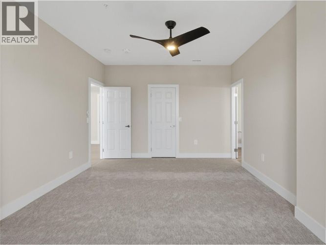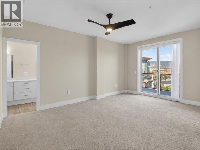 BRAND NEW PENTHOUSE SUITE! The last penthouse remaining in Phase 3 of the Skaha Lake Towers; soaring vaulted ceiling, top floor, panoramic North facing views across the City & Valley in 1584sqft in a concrete & steel building completed & ready to move right in. Featuring huge vaulted ceilings and windows, engineered oak hardwood floors, and a beautiful two tone grey & white kitchen with sleek cabinetry to the ceiling, quartz counters, & a beautiful open plan with room for entertaining. The suite has 2 bedrooms + a den. The huge primary bedroom has stunning views, a private deck, large walk in closet & ensuite bathroom with quartz counters, double sinks & separate tub & shower. The suite has a large den, plus a well appointed 2nd bedroom & full guest bathroom. The over sized laundry room has added space for storage or a hobbies. This brand new concrete & steel building is located just a short walk to Skaha Lake beach & parks + all the awesome trails and outdoor amenities it offers. The unit comes with a secure parking spot in the parkade & a storage locker located conveniently on the same floor as the suite! This complex is not only a stroll to the beach but other great amenities like Kojo Sushi, a bakery & pizza place, convenience stores, the Dragon Boat Pub, & fitness places like SpinCo! All appliances included & net GST is included in the purchase price! No age restriction & two pets allowed, this strata offers great flexibility! Long term rentals allowed no short term. (id:26452)