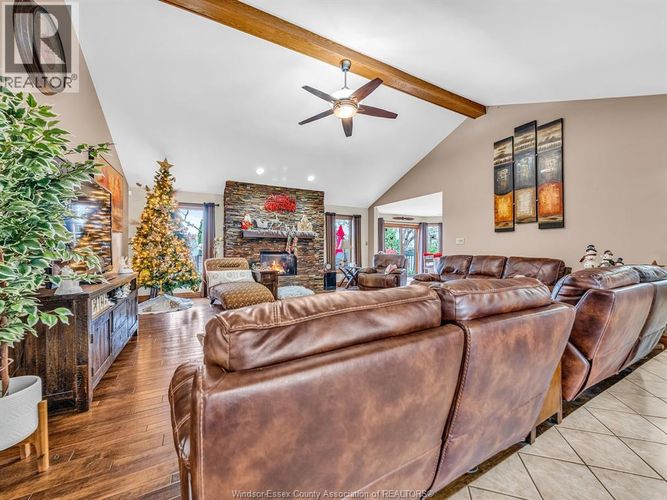This distinguished all-brick three-bedroom ranch sits on nearly half an acre, offering an elegant fusion of country serenity and city convenience. With approx. 2000 sq ft, the home features generous bedrooms, including a refined primary suite with walk-in closet and spa-inspired ensuite. A grand foyer opens to an impressive living room with cathedral ceiling and striking fireplace, seamlessly flowing into a custom kitchen adorned with oak cabinetry and granite counters. The lower level is expansive and ready for your personal vision. Step outside to a private resort-style retreat showcasing a heated saltwater inground pool, gazebo, lounging areas, hot tub, and secluded deck. A two-car attached garage and extended finished driveway provide abundant parking for effortless entertaining. (id:26452)