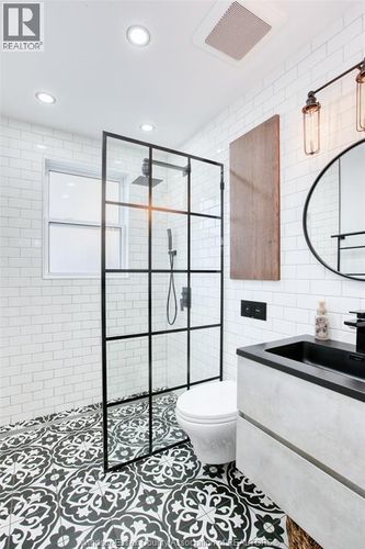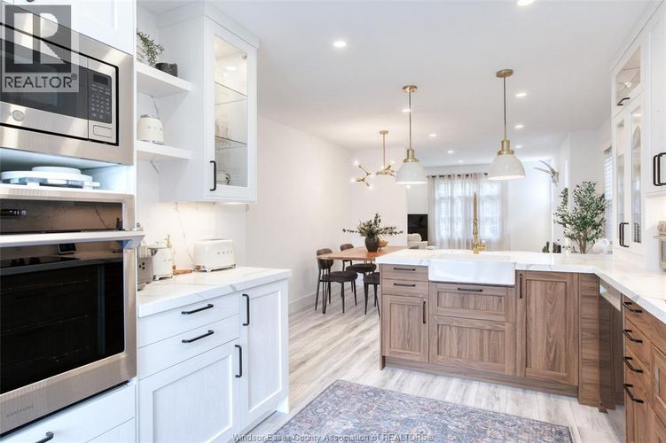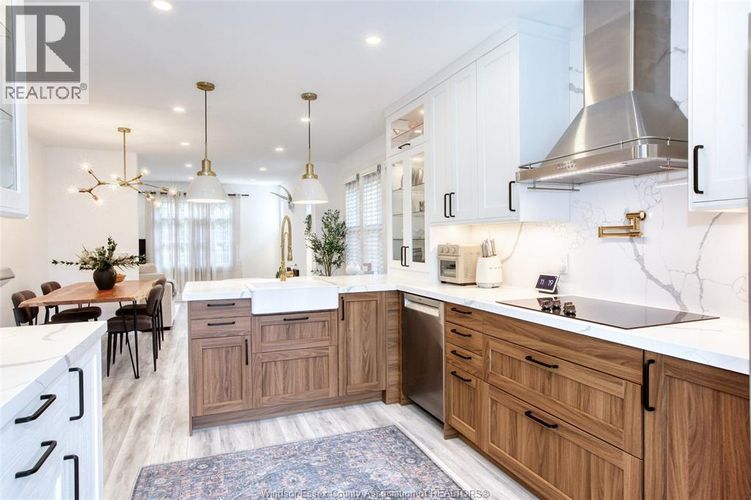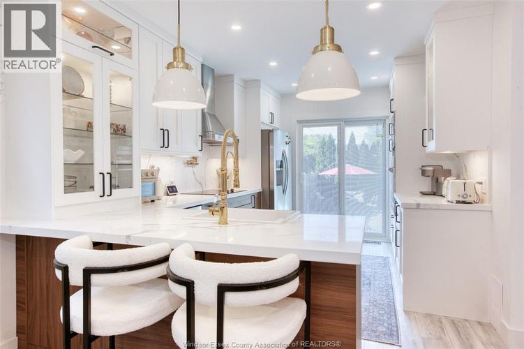 Absolutely stunning showpiece located in highly sought after area of South Windsor. This beautifully renovated brick home has so much to offer, ideal for a growing family. Completely remodelled Open concept main flr living w/luxury vinyl flrs; fam rm/wcozy nat fplc, spacious din rm; Gourmet chef’s kitchen straight out of a magazine w/cabinets to the ceiling, b-in appliances, farmhouse apron sink, pot-filler, eat-in island, coffee bar & quartz counters extended up the backsplash; 2 Main flr bedrooms & gorgeous updated custom mn flr bath w/heated flrs, curbless shower done w/Schluter system & stylish mosaic tile; upper level offers 2 addt'l bdrms & spacious bath, plus a partially fin bsmt. Wonderful private fenced yard w/in-gr pool & spacious patio, perfect for entertaining. No detail has been spared in this 4 bdrm, 2 full bath home w/adorable breezeway & attached garage. Just mins to all amenities incl great schools, shopping, churches/mosque, 401, HWY 3, EC Row & US border. (id:26452)