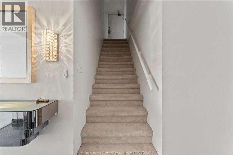 Bright South-Facing Loft Condo with Balcony & Skyline Views - Royal Windsor Terrace. Two-storey loft condominium offering refined downtown Windsor living. Approximately 1,230 sq ft with two bedrooms and two bathrooms. South-facing exposure provides excellent natural light and skyline views. Open-concept main level with modern kitchen and four-person breakfast bar, ideal for entertaining. Private balcony for reading or garden space. Includes same floor laundry, generous closet space, and same-floor storage locker. All appliances included. Utilities included except electricity (historically about $75/month). Condo fees included in the lease. (id:26452)