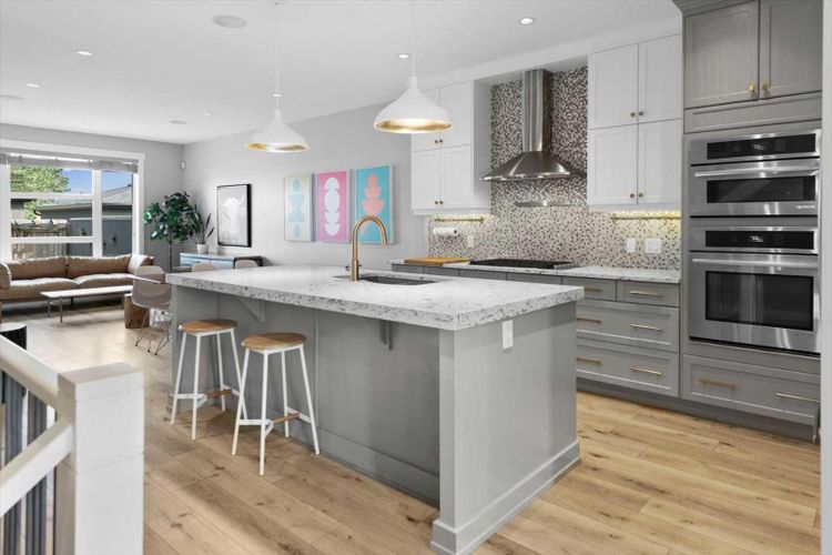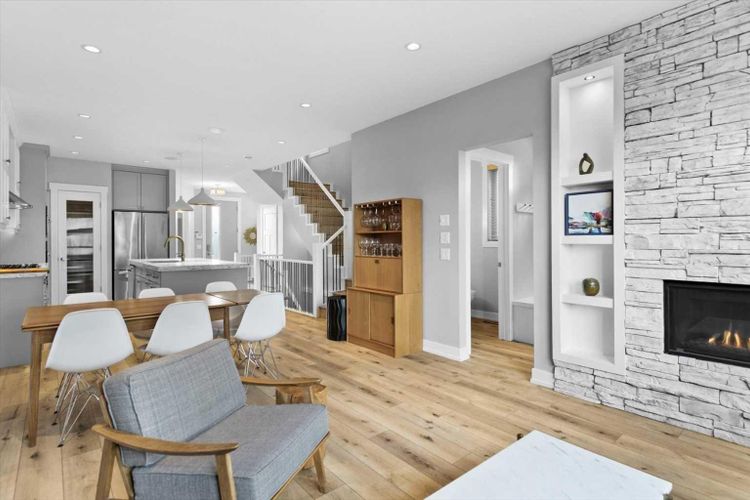 Step into refined elegance with this remarkable 3-storey, 3,380 square feet of fully developed semi-detached home in the desirable community of Banff Trail. This is a rare opportunity to experience modern luxury in an established, tree-lined neighbourhood that captures the best of inner-city living. From the moment you arrive, stunning curb appeal and quiet sophistication set the stage. Inside, wide-plank and durable luxury vinyl plank flooring carry you through a bright, open main level, where natural light pours through oversized windows. At the front of the home, a sun-drenched office with custom built-ins and tall windows creates a workspace that feels inspiring and is perfect for remote work, quiet reading, or creative pursuits. The heart of the home is the show-stopping kitchen, featuring modernized and functional upgrades. An expansive quartz island becomes the gathering place for friends and family, while the professional 6-burner gas range, built-in wall oven, premium stainless steel appliance package, and generous walk-in pantry are ready to elevate every meal, from busy weekday breakfasts to elegant dinner parties. The kitchen flows seamlessly into the sophisticated family room, where a stone-surround gas fireplace anchors the space, offering a warm backdrop for relaxing nights and casual conversations. Upstairs, the second level is highlighted with a central flex room and is ideal as a media space, playroom, or cozy reading nook. Both bedrooms on this floor are generously sized, each with walk-in closets and spa-inspired ensuites, one with a serene 4-piece retreat, the other a 5-piece oasis with dual vanities and a private water closet. Continue upward to discover the crown jewel of the home, the third-floor primary loft retreat. This is a true sanctuary, featuring a spacious bedroom, sitting area, and a luxurious ensuite with heated floors, dual vanities, a steam shower, a deep soaker tub, and a boutique-style walk-in closet with custom built-ins. Imagi ne beginning your mornings here with sunlight streaming in, coffee in hand, and ending your evenings with a quiet soak and a moment of calm above the city. The fully finished basement is designed for entertaining and unwinding. With a large recreation room, sleek wet bar, an additional bedroom with walk-in closet, and a full bath, this level is perfect for guests, teens, or hosting game nights. Built-in speakers throughout the home enhance every occasion, while central air conditioning ensures year-round comfort. Step outside to a private backyard retreat, where a spacious patio is perfect summer barbecues, or simply unwinding with a glass of wine after a long day. The low maintenance landscaping offers a peaceful, green escape without extra weekend work. At the rear of the property, a double detached garage provides secure parking, extra storage, and all-weather convenience. Excellent schools, quick access to LRT, Crowchild Trail, and 16 Avenue ensure convenience without sacrificing character. (id:26452)