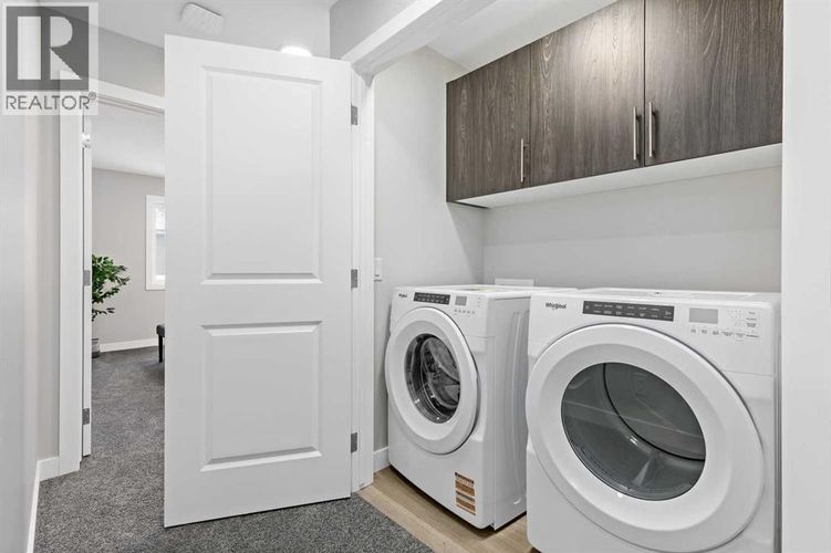 This beautifully designed show home features a double detached garage and welcoming front porch, complemented by 9’ knockdown ceilings throughout the main level. The front lifestyle room offers a spacious area to relax, while a dual-door closet provides ample storage. The center dining area flows effortlessly into the rear kitchen, which boasts stainless steel appliances including a slide-in stove, over-the-range microwave, French door refrigerator, and dishwasher, all enhanced by soft-close cabinetry, quartz countertops, and a stylish tiled backsplash with added upper soffit filler. A dual-door pantry and rear entry with a coat closet add convenience, along with a 2-piece bath on the main floor. Upstairs, plush carpeting covers the hall and two front bedrooms, while the rear primary suite features vinyl plank flooring in the 4-piece bath, complete with a quartz storage vanity, tub surround with decorative tile accents, and direct access to a spacious walk-in closet. The upper laundry area includes a washer, dryer, and additional upper cabinets for storage. A second vinyl plank 4-piece bath with quartz vanity and tiled tub surround serves the upper level, alongside an upper linen closet. The finished legal basement suite with a separate side entry offers comfortable living with carpeted floors and knockdown ceilings. It includes a common area leading to the utility room, a stacked laundry closet with full-size washer and dryer, and a vinyl plank 3-piece bath featuring a separate shower, quartz storage vanity, and tile accents. The suite’s kitchen is equipped with vinyl flooring, upper and lower cabinets, stainless steel fridge, smooth-top stove, dishwasher, quartz counters, tiled backsplash, and over-the-range microwave. A rear bedroom with closet completes this self-contained living space. Not just a home but a smart investment with a legal suite and double detached garage!This home combines modern finishes, thoughtful design, and a fully finished legal suite, pe rfect for families or investors seeking comfort and versatility. (id:26452)