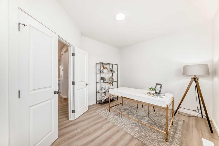 STARLING HAS BEEN QUIETLY BUILDING A REPUTATION—for calm streets, thoughtful design, and a nature-forward rhythm that buyers notice the moment they arrive. This home leans right into that energy. The WIDE FRONT PORCH sets a grounded first impression, and inside, natural light moves through the main floor with the kind of ease that makes the whole space feel instantly welcoming. Warm LVP, 9' CEILINGS, and a clean, modern palette work together to create that subtle “this feels right” moment you feel as soon as you walk in.And then there’s the FLEX ROOM.Framed with FRENCH DOORS and positioned with just enough separation from the main living spaces, it’s the RARE MAIN-FLOOR ROOM that feels truly intentional—not a leftover corner repurposed as an “office,” but a space with presence. It becomes whatever your life needs most: a polished workspace, a creative zone, a reading retreat, or simply a quiet room with a door when the rest of the house is in motion.The kitchen continues that thoughtful rhythm: QUARTZ COUNTERS, 42" UPPERS that keep the lines crisp, a CHIMNEY HOOD FAN that anchors the design, and storage placed exactly where real routines land. The SEPARATE SIDE ENTRY adds smart flexibility—practical now, and perfectly positioned for whatever plans come later.Upstairs, the layout stays calm and well-proportioned. Bedrooms sit where they should, offering both connection and privacy, and the upper laundry room keeps daily life where it actually happens. The primary ensuite is the unexpected luxury in this footprint: A SOAKER TUB, A TILE-AND-GLASS SHOWER, AND A DUAL-SINK VANITY—a trio rarely found together in homes this size, and one that quietly transforms both mornings and evenings.Outside, the REVERSE-PIE LOT is a meaningful advantage. It gives you a LARGER FRONT YARD AND A GENEROUS SIDE YARD, creating more breathing room, more natural light, and a sense of separation that’s uncommon in new communities. The off-street parking pad off the paved lane provides easy parking right at home—no street shuffle required. Add the REAR DECK with its BBQ gas line, front sod already in place, and 200-amp electrical service, and the long-term livability becomes clear.Set within steps of Starling’s PATHWAY NETWORK and nature-first streetscape, this is a home that blends light, flow, and flexibility with quiet confidence.BOOK A SHOWING and come see how naturally it fits the way you live. • PLEASE NOTE: Kitchen appliances are included, and will be installed prior to possession. (id:26452)