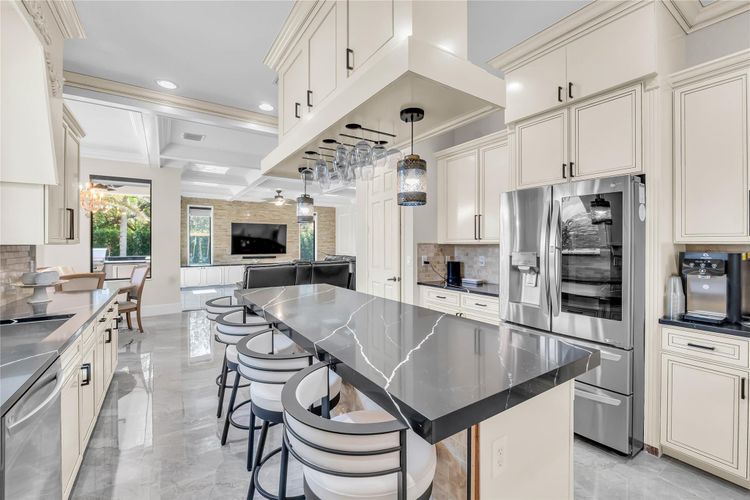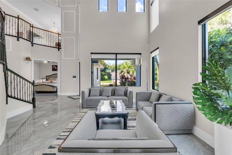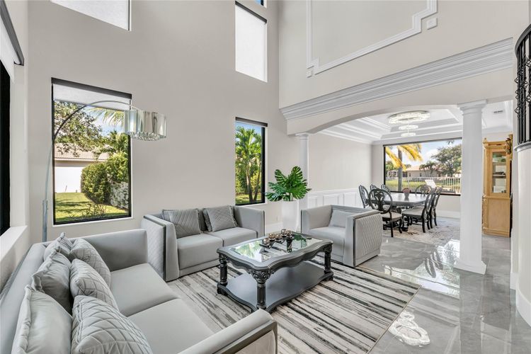Your tropical oasis awaits at The Isles at Wellington on an oversized water lot. 4/5+ loft + 3-car garage, Tesla roof solar panels with 3 battery backups. Brand new roof & impact windows. Remodeled kitchen, first floor bathrooms, primary bathroom & new window treatments. Backyard perfect for outdoor entertaining with a state of the art salt pool with a full automative system, synthetic turf, playground, built-in summer kitchen, gazebo, outdoor shower, 2,500+sq ft of porcelain tile decking. New carpet installed at stairs/upstairs. Complete custom garage with interlocking floor tiles, cabinets, work table, utility sink, refrigerator, water softener treatment center and pressure washing system.
