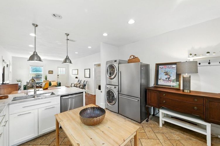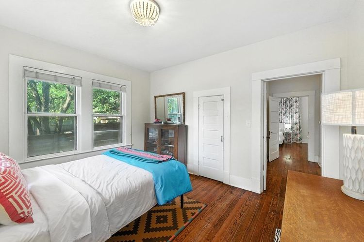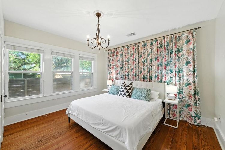 Set beneath a canopy of mature trees on a 0.18-acre lot, this 1,008 sq. ft. home offers rare potential in one of Austin’s most sought-after locations. The current layout includes 2 bedrooms, 1 full bath, and flexible living and dining spaces filled with natural light. The large attic has reinforced floor joists and plywood floor, which presents an easy opportunity to expand into a second-floor flex space with a balcony.
