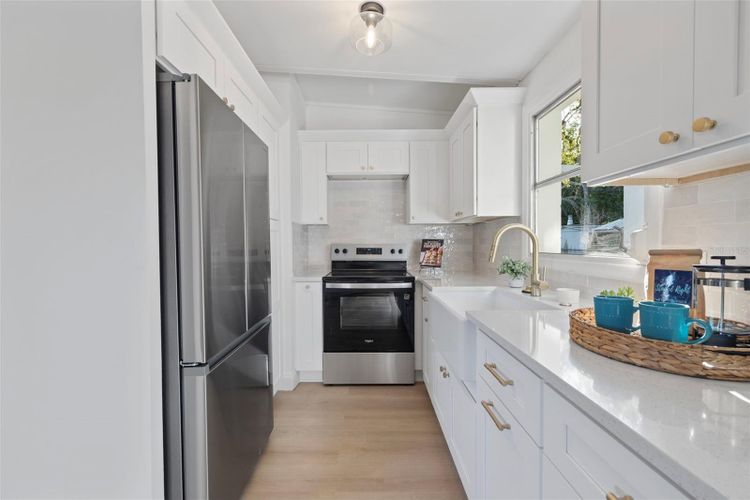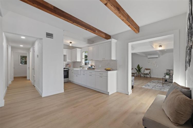 Completely Renovated & Move-In Ready! This solid block 3-bedroom, 1-bathroom home has been updated from top to bottom with quality finishes and energy-efficient upgrades. Inside, you’ll find luxury vinyl floors throughout, fresh interior paint and trim. The kitchen has been completely remodeled and features quartz countertops, white shaker style cabinets, a farmhouse sink, and new appliances that make this space a chef's dream. The bathroom has been beautifully updated. The exterior boasts fresh paint for modern curb appeal. Notable items include new interior and exterior paint, and a new HVAC system (2025). Centrally located close to shopping, dining, and beaches, this home blends style, comfort, and efficiency—ready for you to move in and enjoy!