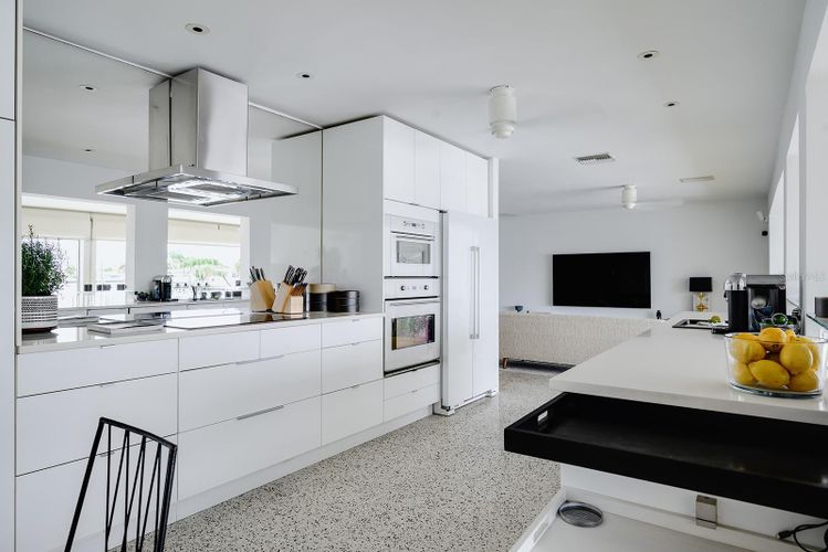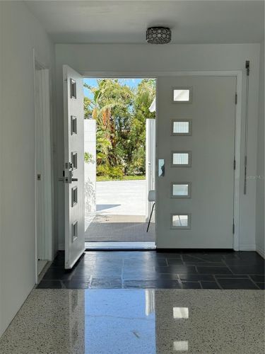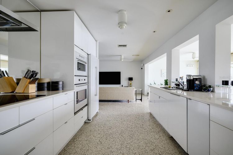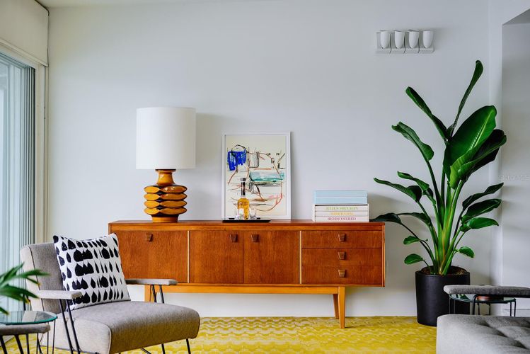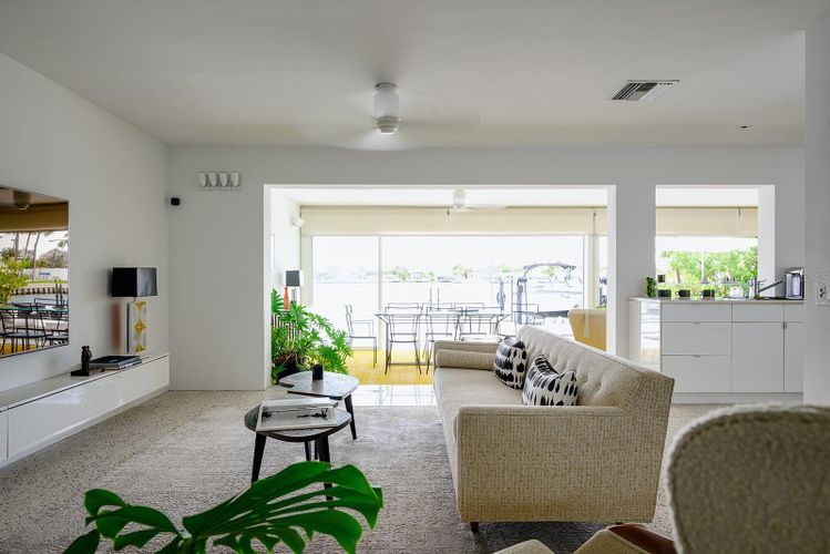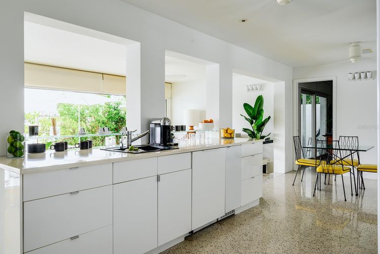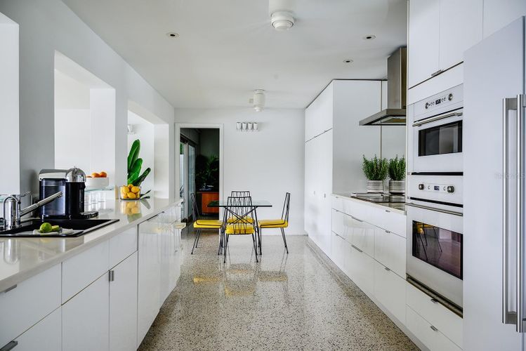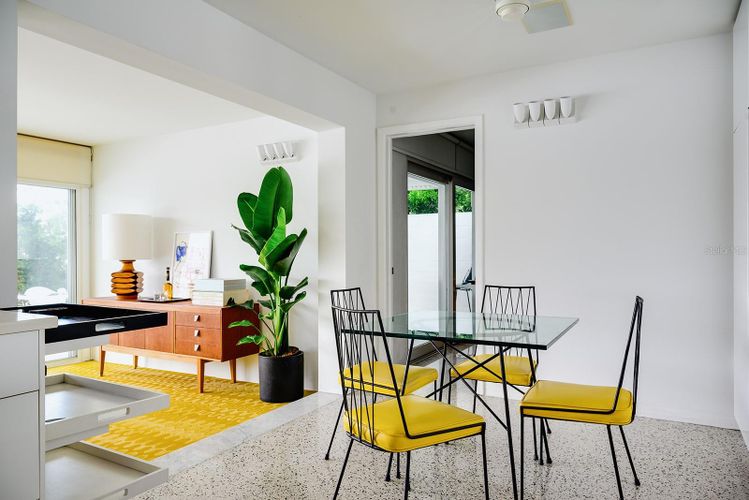 GAME CHANGER...the seller is in the process of having 4-5' aluminum flood panels installed for all the doors and windows. Panels can be stored off-site and installed when needed by the installer (for a fee) or the homeowner can store and install themselves. Flood insurance discounts may be available, but peace of mind is priceless! Mid-Century Modern and Coastal Chic converge in this reinterpretation of a contemporary beach house. This four-bedroom (or home office), two-and-a-half-bathroom home harmonizes with its lush surroundings and captivating water vistas, and has been thoughtfully curated to embody a chic, vibrant, and welcoming atmosphere. Meticulously designed and updated by a distinguished New York design and lighting consultant (clients include Ritz Paris, Cipriani & Ralph Lauren to name a few), every facet of this home is a testament to style and sophistication. The lushly landscaped circular driveway invites you inside through a gated entrance into one of two secluded outdoor courtyards. Passing through modern double doors, an open-concept layout unfolds, blending living and dining areas. Making it hard to tell where the interior ends and the outdoors begins, a 40-foot expanse of glass pocket slider doors seamlessly blurs the boundaries between indoors and outdoors, in classic Mid-century style. Enhancing privacy and security, roll-down hurricane shutters on exterior doors and sliders provides convenience when needed. With a southern exposure ensuring abundant natural light and dynamic sky views throughout the day, this home boasts a design characterized by clean lines, original polished terrazzo and Missoni® Bolon® flooring, and contemporary lighting fixtures. Each element has been curated to complement the property's distinctive aesthetic. Luxurious bathrooms, including a guest outdoor shower and a private patio with an outdoor tub and shower off the primary bedroom, showcase modern updates. The exquisitely updated kitchen features modern lacquer cabinets, double wall oven/microwave, glass cooktop and a delightful eat-in dining area. Seamlessly integrating indoor and outdoor living, this Mid-Century Modern work of art, offers multiple access points to outdoor spaces, entertainment areas, and water features. Imagine enjoying afternoon breezes basking in the sun or hosting soirées under the stars in the expansive outdoor living area, featuring Mid-Century style custom Moroccan pavers, a solar-heated in-ground pool, a sun deck featuring Italian patio umbrellas by EMU, contemporary lounge furniture and fire pit by Viteo, a built-in covered outdoor kitchen, dining area, boat dock with 10k lift, floating dock and panoramic waterfront views from the newer 77-foot seawall. This luxurious residence has most everything for living a modern coastal lifestyle. Nearby waterfront dining and shopping options are easily accessible by foot or golf cart, with the 65-mile Pinellas Bike Trail just a stone's throw away. Located near I-275 and the Sunshine Skyway, this home provides swift access to Tierra Verde/Fort DeSoto, Pass-A-Grille, DTSP, Tampa, Clearwater, Sarasota, and several international and private airports. St Pete Beach is consistently voted one of the best overall locales in the country and is renowned for its stunning pristine beaches. This residence presents a rare opportunity to elevate your lifestyle. Love boating...for the sellers convenience, the boat could be included.