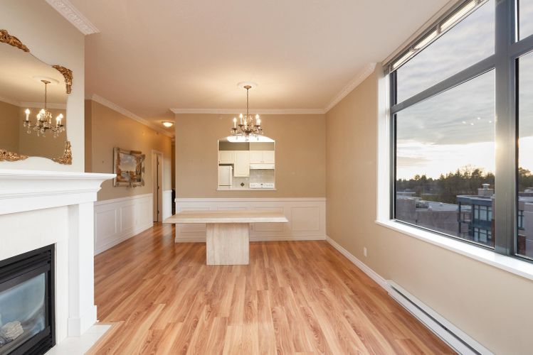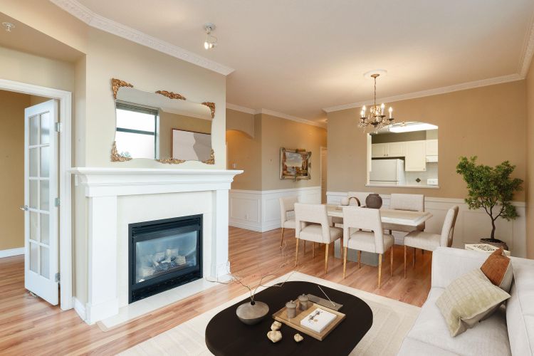 First time on the market is this IMMACULATE residence of distinction located next to the highly anticipated new Oakridge Park. This bright & airy 1128 sqft two-bedroom, two bathroom, den & sunroom home will check all your boxes. Featuring NW corner exposure, this home w/ high ceilings features a wonderful gas fireplace in a spacious living & dining area that can easily accommodate house-sized furniture. The kitchen offers an abundance of cabinets & a unique window for extra light. You will be impressed w/ the large principal bedroom offering a walk-in closet & ensuite. Steps to Canada Line skytrain, Tisdall Park, Jamieson Elementary, YMCA, Langara College, golf course & more. Bonus: 2 parking & locker. This midrise concrete home w/ views of Richmond & Northshore mountains will not last!