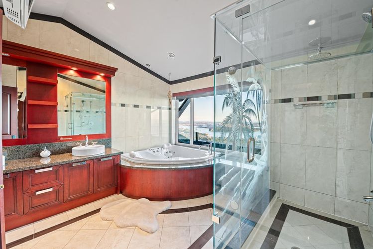 Magnificent Luxury Home in WHITBY ESTATES with unobstructed panoramic City and Ocean views. Custom 5 bedroom 6 bathrooms home with very expensive quality throughout. Wok Kitchen, Air-Conditioning, elevator, back yard for children playing area , sauna ,Gym ,wine room , gated property , Radiant Heating, Drive way heated , 3 car garage , 12' high ceilings plus a Home Theatre and out door Swimming Pool. Full privacy from all floors. Located in one of the best quiet cul de sac luxury neighborhood. Public Open House on Sunday April 6th, 2-4pm