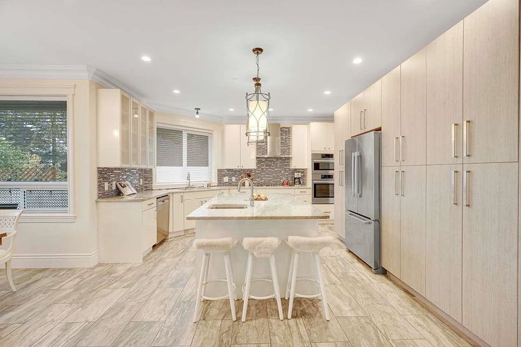 Welcome to this exquisite custom-built home in the heart of White Rock. 8,324 SF corner lot with 73' frontage and 113' depth, south facing backyard. A great room concept mian floor has a spacious family/living rooms, homey kitchen loaded with premium features, 3cm thick one-piece Quuartz island & countertop. soft closing cabinetry, and Bosch appliances. a secondary PRIMARY Bedroom and an office on main. Upstairs offers four bedrooms, including an expansive PRIMARY BEDROOM spanning almost 300 SF, along with three other generously sized bedrooms. The basement is toughly designed with a Media Room and Recreation Room for upstairs use and a two- bedroom legal suite with separate entrance. School catchment: Ray Shepherd Elem. Elgin Park Sec School. street parking allowed on North Bluff Road.