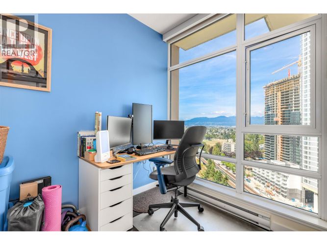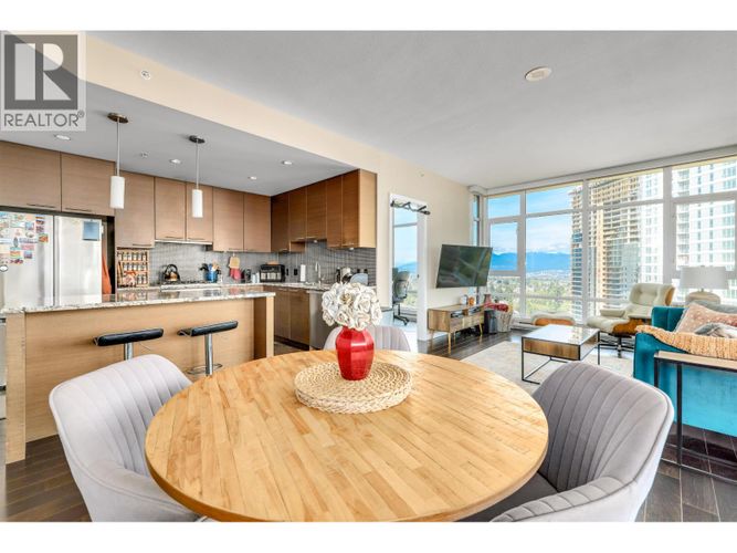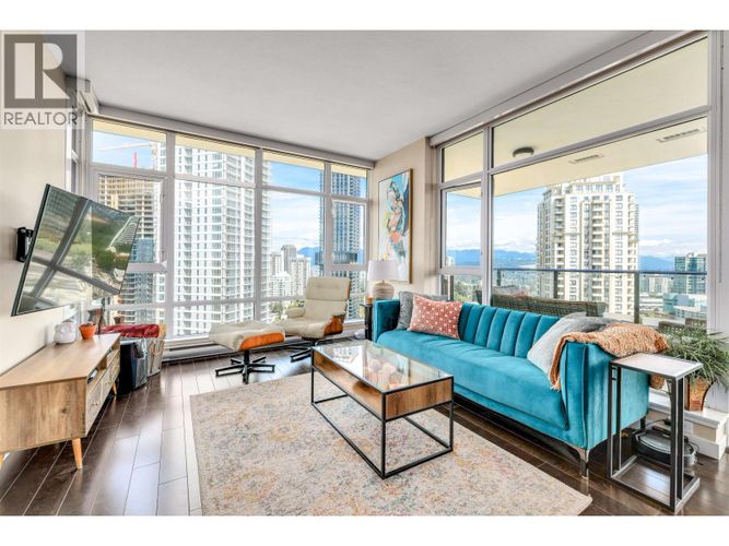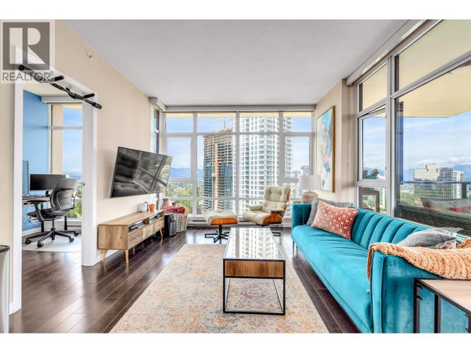 JEWEL-II by award-winning Boffo. Spacious 1,155 sq-ft corner unit with plenty of natural light exposure and fantastic mountain & city views! Functional 2 bedrooms, 2 full bathrooms plus den with windows. Modern open kitchen with stainless steel appliances, granite countertops, and gas cook ranges. 9' high ceiling, engineered hardwood flooring, and a large 251 sq-ft balcony. 1 parking space and 1 storage locker are included. Amenities include 24 hour concierge, fitness centre, hot tub & steam room, lounge, and meeting room. Central location and walking distance to Metrotown, Station Square, Crystal Mall, Skytrain station, Central Park, Library, many restaurants, cafes and supermarkets! QUICK POSSESSION POSSIBLE!