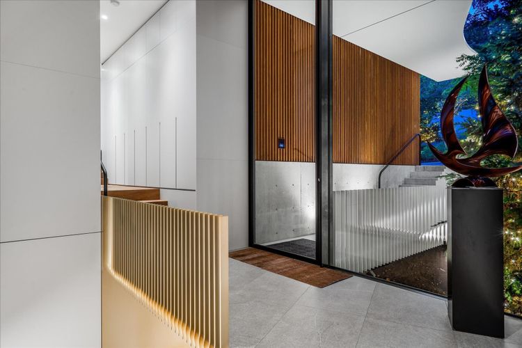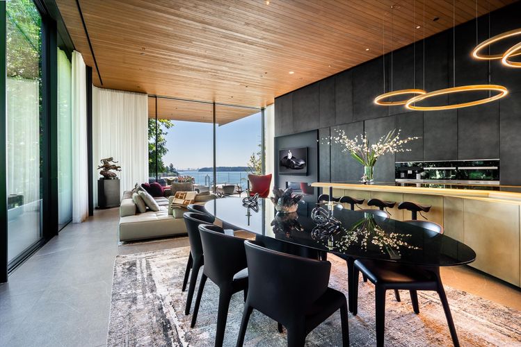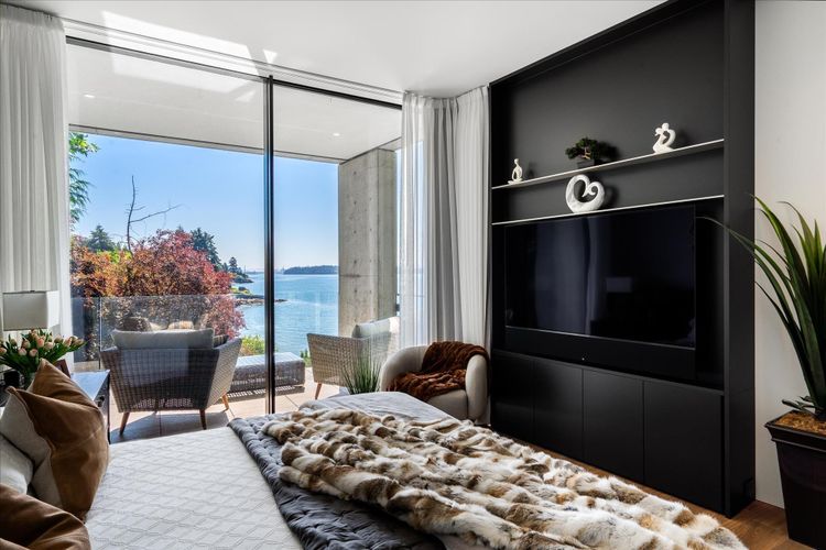 Located in West Vancouver’s West Bay neighborhood this brilliantly designed modern residence by architectural firm MCLEOD BOVELL is a rare example of high performance construction masterfully designed and situated on this uniquely positioned beachfront property. Exceptional quality featuring exposed concrete and steel construction together with an impeccable choice of quality materials define this brilliantly designed 4 bedrooms, 4 and 1 half bathrooms modern residence. Each principal living area offers spectacular ocean views providing one of the most sensational settings imaginable. Many features include: Lutron home automation, air-conditioning, heated driveway and 2 car garage. The property is professionally landscaped and illuminated at night with dramatic effect.