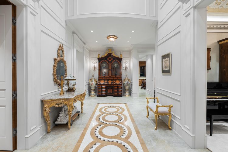 This stunning residence is privately set on a gated lot in Vancouver’s most prestigious First Shaughnessy, blending modern sophistication with timeless elegance. Sun-filled interiors captivate with ceilings hand-painted by an Italian artist, exquisite millwork, and premium finishes. An elegant reception hall leads to formal living & dining areas, a private study, and a gourmet kitchen with marble island and Miele appliances, flowing into the family room. 5 ensuite bedrooms and 8 baths span three levels, while the finished basement offers a luxurious retreat with recreation room, bar, media room, gym, and sauna/steam room. Additional highlights include an elevator, heated driveway, three-car garage, and gas-powered generator. A meticulously crafted home and a true showcase of refined luxury
