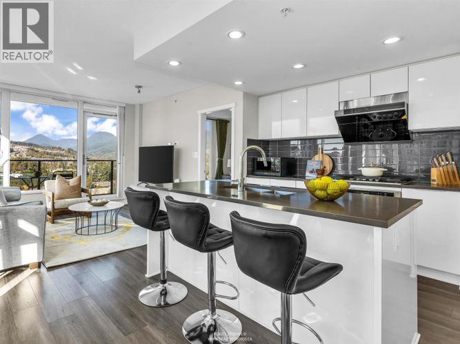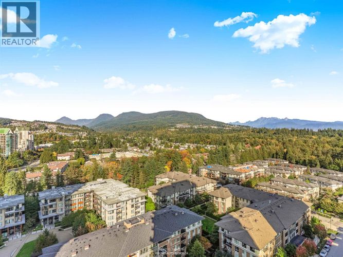 Lloyd by Polygon. Owner occupied 2 bedroom & 2 full bath bright corner unit w/open floor plan. Panoramic mountain views. Gourmet kitchen w/large island, stainless steel appliances, gas range. Freshly painted & move in ready. New washer & dryer. Laminate flooring. Pet Friendly building w/dog washing station. Steps to Glen Park. Nearby Coquitlam Centre & Evergreen skytrain station, 7 min walk to Glen Elementary School. Close to Maple Creek Middle School & Pinetree Secondary School. Building Amenities: Lounge, gym, bike room & courtyard garden. Nakoma Club: Outdoor swimming pool & hot tub, Fitness area, Gym (basketball, badminton, pickleball) table tennis, Amenity room (Mahjong & Billards), 2 guest suites & concierge. OPEN HOUSE Sat Aug 25th & Sun Aug 26th (2-4 pm)