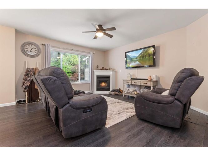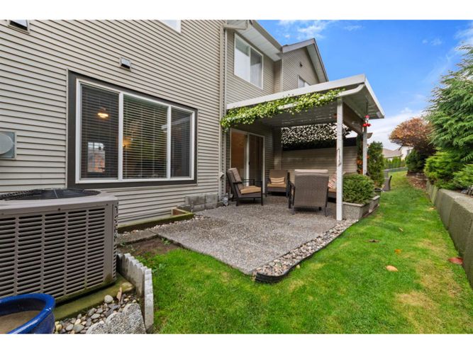 BACKING CROWN LAND! APPLE CREEK TOWNHOUSE COMPLEX IS ONE OF THE BEST FAMILY ORIENTED IN CHILLIWACK. OFFERS R.V. PARKING WITH SEPTIC DISPOSAL ... WHO HAS THAT? RIGHT! IN A FULL STRATA, CHILD'S PLAY AREA, CLUBHOUSE WITH GAMES ROOM. THIS 3 STOREY WITH 3 BEDROOMS, 2 1/2 BATHS, HUGE REC ROOM DOWN ... CAN BE USED FOR MULTI FUNCTIONS. MAIN FLOOR IS AWESOME W/O ONTO YOUR VERY PRIVATE COVERED PATIO AREA. A/C FOR THOSE HOT SUMMERS, BUILT IN VAC, NEWER HWT, DOUBLE GARAGE 2 DOGS (NO SIZE RESTRICTION) or 2 CATS. 1 DOG or 1 CAT. MAKE YOUR OFFER TODAY!