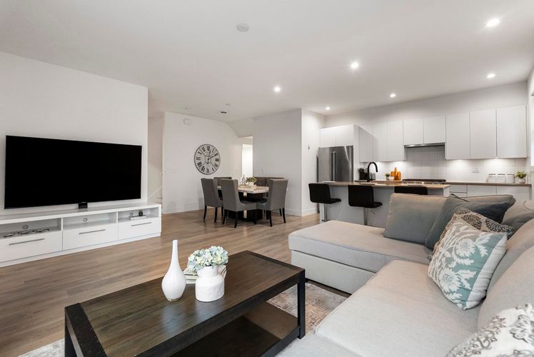 Bright and stylish corner home in sought-after Berkeley Village. This 3-bedroom plus large den, 3-bath townhome offers nearly 1,500 sq.ft. of well-designed living space. The open main level features abundant natural light, modern finishes, and a spacious layout perfect for everyday living. Upstairs you'll find generous bedrooms and a comfortable primary suite. The standout feature is the incredible 550 sq.ft. rooftop deck—ideal for relaxing or entertaining—complete with patio furniture, gazebo, BBQ, mini fridge, heat lamp, and built-in counters, all included. A double side-by-side garage, great amenities, and a convenient South Surrey location make this an exceptional find.
