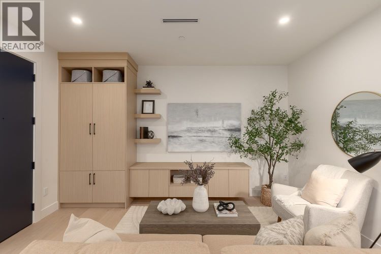 Experience the front home at The Westline Collection, set on a quiet tree lined street with impressive street presence and a private front yard with patio and BBQ hookup. This 1,435 sf 3-bedroom home features an open main floor with space for real dining, wide plank light oak engineered hardwood, and a Scandinavian inspired island kitchen with Fisher Paykel appliances, quartz counters, under cabinet LED lighting, and custom millwork. Upstairs, the large primary offers a generous WIC & a spa like ensuite finished with Italian and Spanish tiles, quartz counters and Riobel matte black fixtures. Enjoy modern finishes, built in organizers, full size laundry and smart home readiness in a truly convenient location close to amenities, cafes (Breka!), restaurants, and transit.