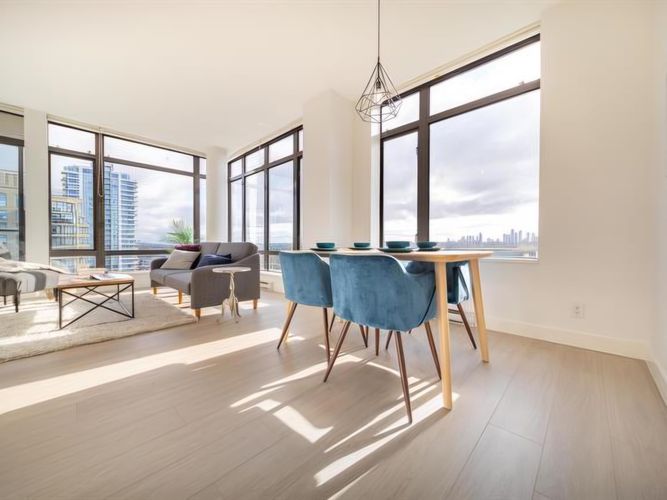 Welcome to this stunning 3-bedroom, 2-bathroom home on the 28th floor of a concrete high-rise in the heart of Brentwood. Enjoy unobstructed southeast views of Mount Baker from your sun-filled, south-facing suite — a rare find that’s bright all day long and truly stands apart from darker north-facing units. Just a 5-minute walk to Gilmore SkyTrain Station, this 1,155 sq. ft. residence features laminate flooring throughout, a brand-new fridge, and a new washer + dryer. The building offers resort-style amenities, including an indoor swimming pool, fully equipped gym, steam room, and sauna — perfect for relaxing after a long day. Parking and storage locker included. No smoking. Small pets welcome.