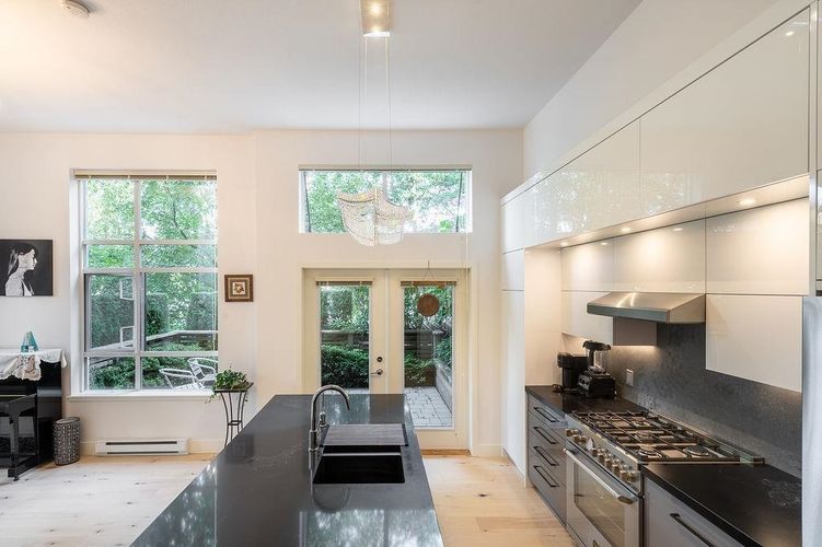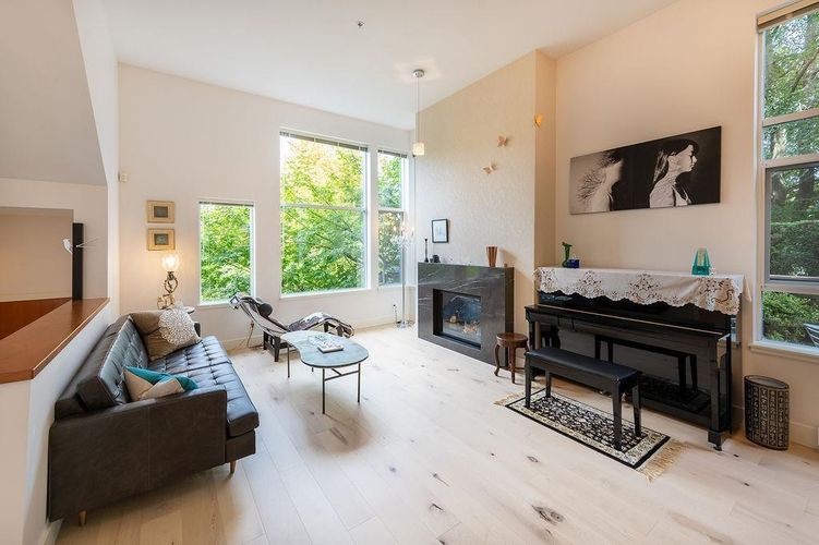 Built by award-winning Intracorp, this corner home in the prestigious Chancellor community at North UBC offers a desirable northeast exposure and dramatic 12-foot ceilings that flood the space with natural light. The renovated chef's kitchen features premium cabinetry, a Bertazzoni cooktop, Caesarstone waterfall countertops, and a full-height slab backsplash. Mirage DuraMatt wide-plank engineered hardwood flooring runs throughout, complemented by a striking granite fireplace. Upstairs includes a spacious primary bedroom with high ceilings and upgraded wool carpet, two additional bedrooms with mountain and ocean views, and a versatile den. The lower level provides an open recreation area with potential for a fourth bedroom, in-suite laundry, and generous storage. Two underground parking.