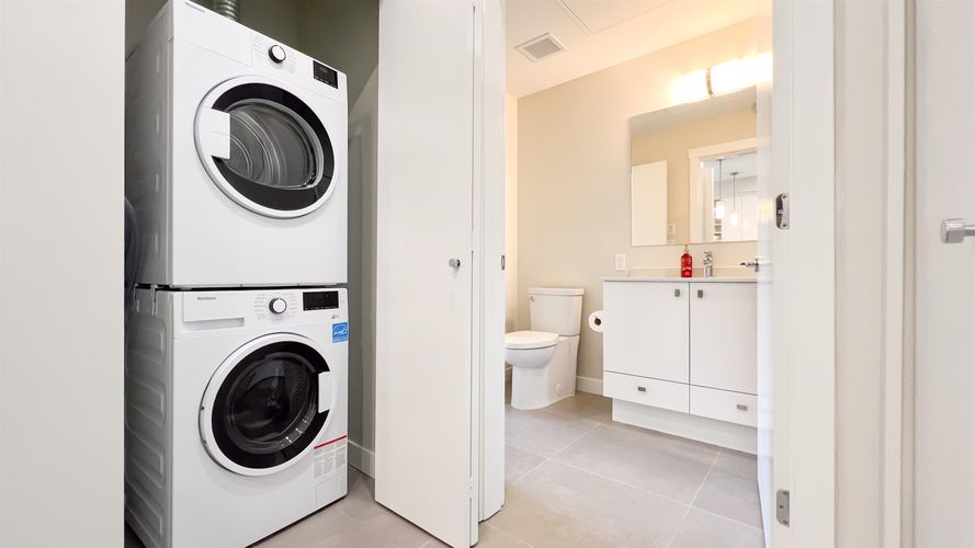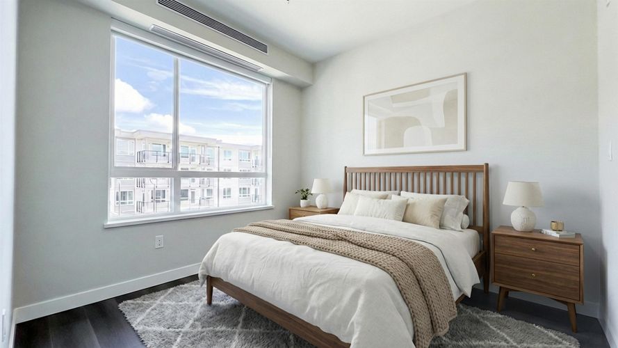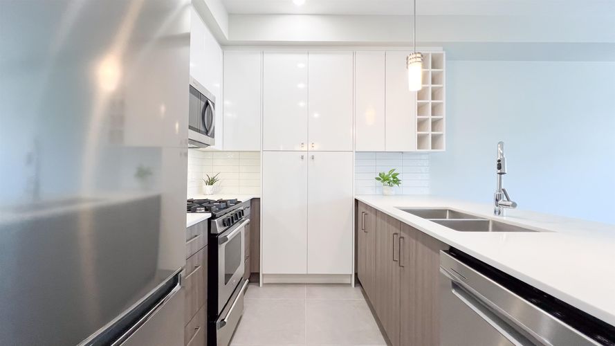 New 2026 gorgeous condo at the Hamilton Village master planned community. Bright and airy with a 9-foot ceiling, central air conditioning, and forced-air heating. The spacious open kitchen features quartz countertops, a gas stove, and stainless steel appliances, making your cooking experience very enjoyable. The large balcony with a gas hookup is perfect for barbecues. EV charger at your parking spot. The Hamilton Recreational Center, Hamilton Elementary, and walking trails are at your doorstep. Perfect location with easy access to shopping, skytrain, highways, and surrounding areas such as New Westminster, Burnaby, Surrey, and others.