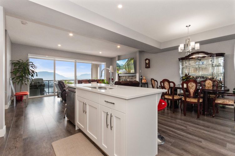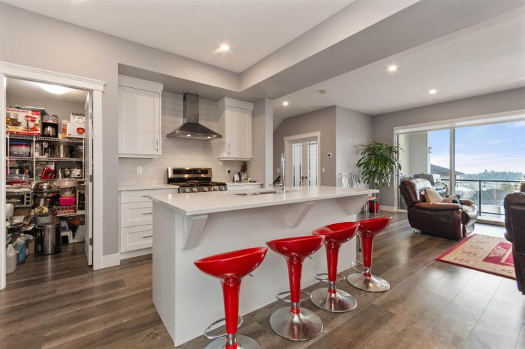 Perched on a quiet street in Promontory Heights, this stunning 3-storey executive home offers panoramic valley views from every level. Just 6 years new, the home features 4 spacious bdrms plus a den, with an unfinished lower level roughed-in for a future suite with separate entry, perfect for extended family or mortgage helper. Designed for entertaining, the open-concept main features oversized patio doors that seamlessly extend the living space onto a covered deck, allowing you to enjoy year-round. The bright, modern kitchen includes upgraded SS appliances, including an impressive Insta-View refrigerator and gas range. A convenient main-floor den and laundry. Upstairs, the luxurious primary retreat boasts double closets a 4-piece ensuite, and a massive 147 sq ft private patio.