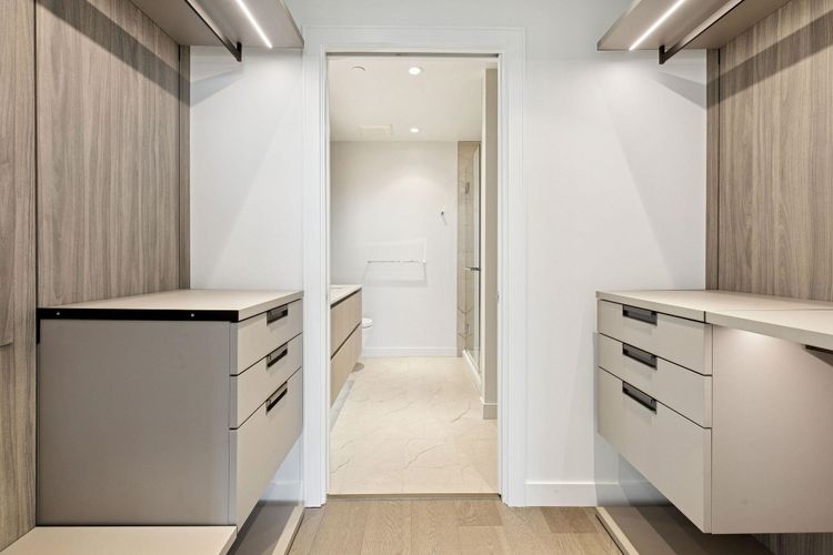 Privacy, views & space define this impressive 2-bed home overlooking a park with water, mountain, & Downtown Vancouver views. The well-designed layout offers a spacious primary bedroom w/ ensuite & walk-through closet, plus a 2nd bedroom w/ walk-in-closet. Enjoy TWO covered patios w/ a rare unobstructed outlook & gas hook up. The home features an upgraded Gaggenau appliance package, floor-to-ceiling triple glazed windows, elevated ceiling heights, heated tile bathroom floors, & A/C. The EXTRAS truly set this home apart: 2 parking stalls, incl. 1 EV-ready, a motorcycle stall, a private storage ROOM, an additional storage locker, and TWO bike lockers. Benefits include concierge, a guest suite, and access to Denna Club amenities (fitness centre, indoor pool, hot tub, steam, sauna, and more)!