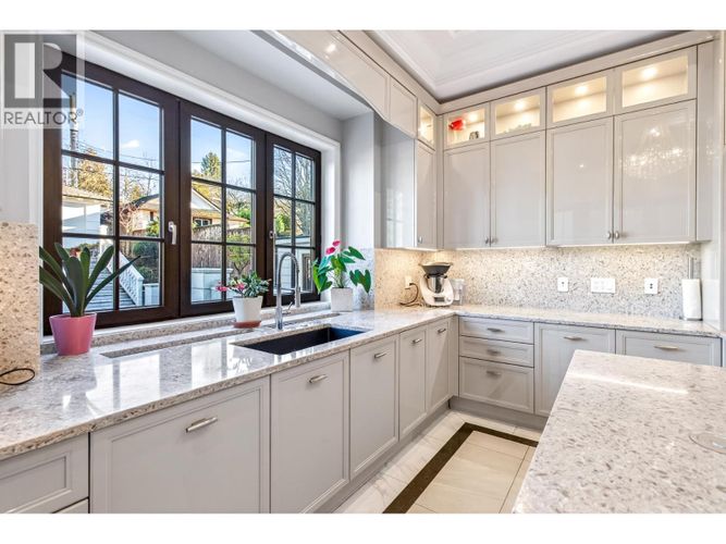 Anchored on an impressive 10,652 SF corner lot in prestigious Shaughnessy, this remarkable custom estate showcases approximately 6,400 SF of impeccably designed living space, crafted for refined living and grand entertaining. The gourmet kitchen is a showpiece, appointed with elite appliances, custom millwork, and seamless access to a sun-filled patio for effortless indoor-outdoor flow. Four expansive, luminous ensuite bedrooms occupy the upper level, while the lower level offers three additional ensuites and a generous recreation lounge. Meticulously landscaped, fully fenced grounds ensure privacy and elegance. A rare 450 SF laneway office completes this extraordinary offering—an iconic expression of luxury and architectural distinction.