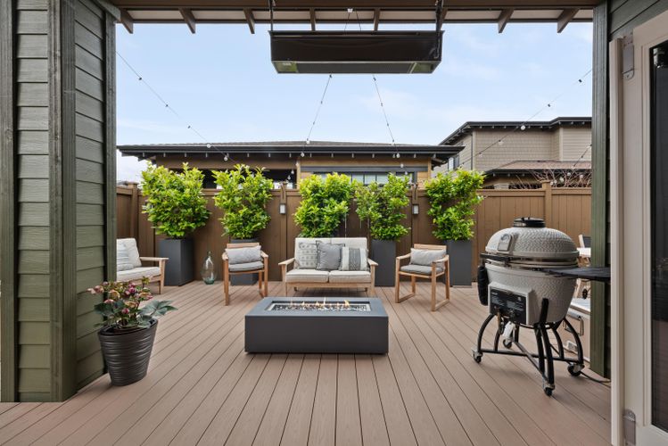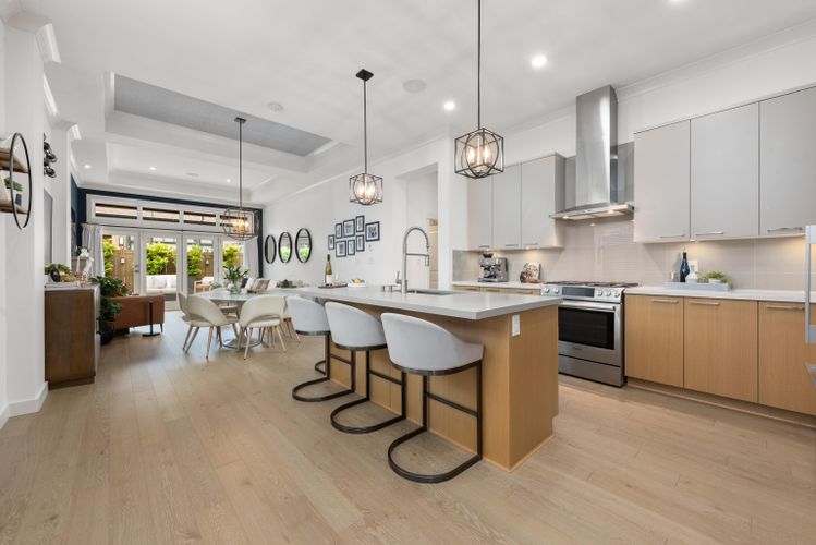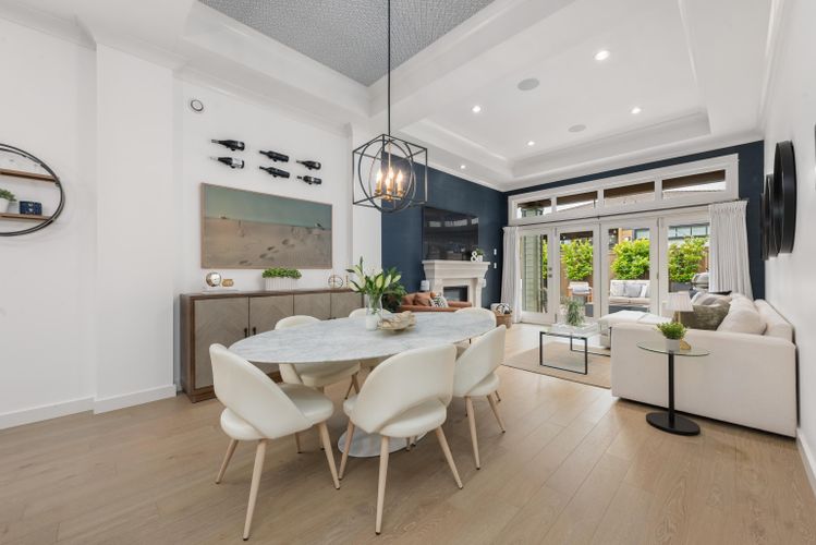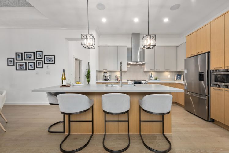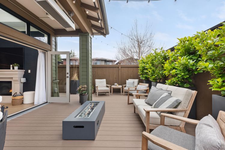 Rarely available 2 bedroom + den rancher situated on a quiet corner lot in Tsawwassen Springs. This exceptional home features a bright, open-concept floor plan with soaring 10-foot ceilings and refined finishes throughout. The gourmet kitchen is a chef’s dream, complete with custom cabinetry, top-of-the-line Bosch appliances, undermount sink, and an extended quartz island—perfect for entertaining. The spacious primary bedroom offers a luxurious ensuite, Every detail has been carefully curated, including custom drapery, statement lighting, engineered hardwood flooring, and a built-in home audio system. Seamlessly blending indoor and outdoor living, the stunning outdoor oasis features bifold doors, composite decking, and an outdoor heater creating the ultimate year-round entertaining space.