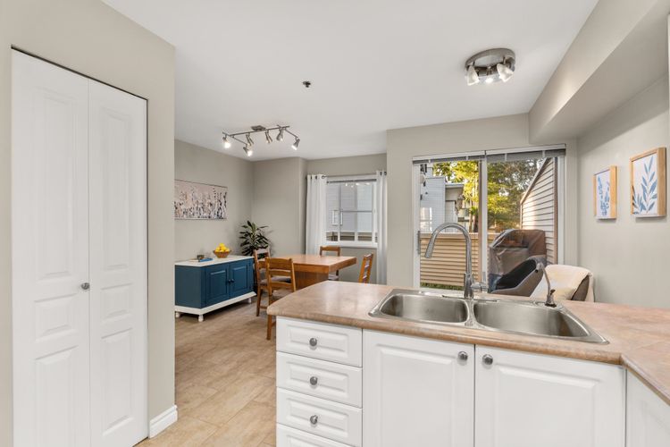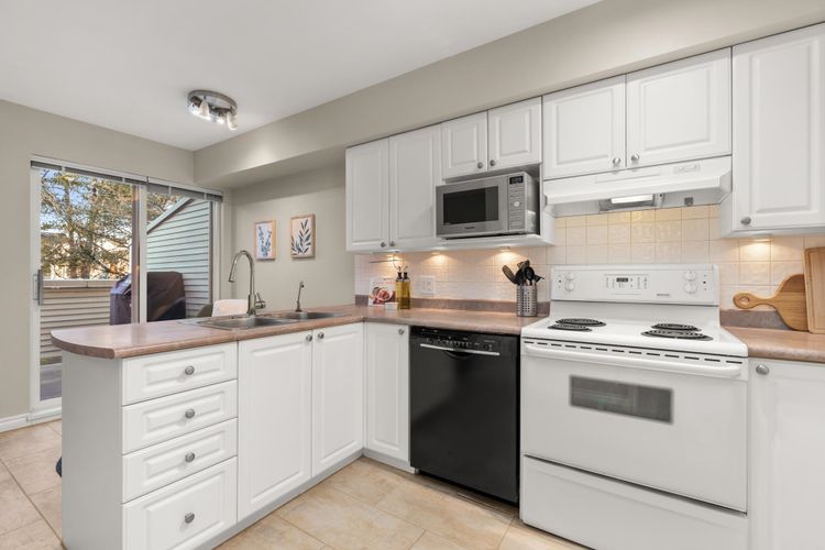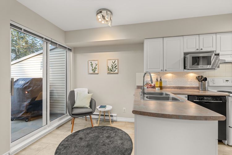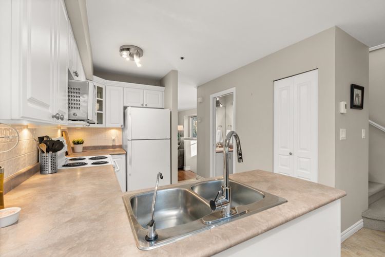 Welcome to this 3 bed END UNIT townhome north of the tracks, featuring a private main entrance from outside the complex and NO UPSTAIRS OR DOWNSTAIRS NEIGHBOURS, a rare and highly sought-after layout. Enjoy exceptional walkability just steps to Meadowvale Shopping Centre, West Coast Express, schools, shopping, and the Pitt Meadows Rec Centre. The open concept kitchen is bright and functional, with a dining area that opens to a BBQ patio, ideal for everyday living and entertaining. The HUGE primary bedroom has a walk-in closet, while the third bedroom on the 1st level is perfect for teenagers or a home office. Parking includes a garage plus an extra spot that fits a FULL-SIZED TRUCK. No size/breed restrictions on dogs!