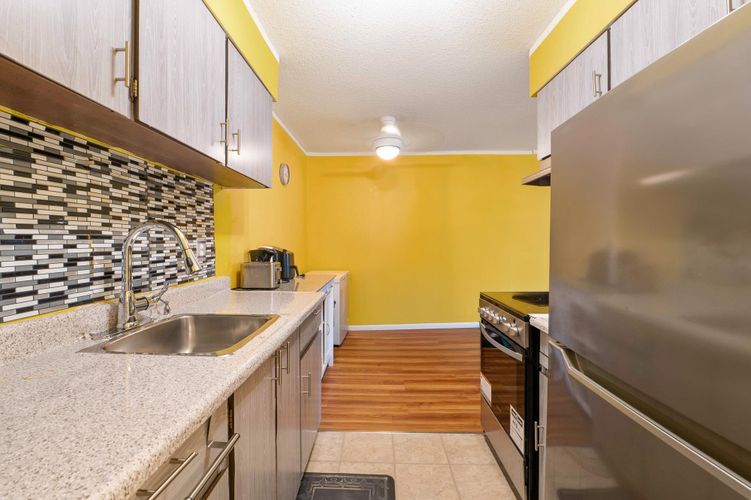 Attention buyers/investors. Best value in Delta! TOP FLOOR, RENOVATED with new SS appliances. Bright, sunny 1 bed,1 bath condo in Sun God Villa. Comes with 2 PARKING STALLS, DESIGNATED STORAGE LOCKER, HEAT & HOT WATER INCUDED included in the strata fees! NEWER ROOF & PIPING and NO AGE RESTRICTIONS! Pets allowed with restrictions. RENTALS ALLOWED! Located at the quiet end of the street, secured gated community, large picnic area, swimming pool, biggest parking lot in the area, RV parking, car wash area. CLOSE to schools, transit, restaurants. STEPS to KENNEDY SHOPPING & senior centre, church, Kennedy's pub. Shared laundry. Amazing location & neighbors! Excellent investment as the area is being developed. March 7/8 1-4 by appointment only. Hurry before its gone!