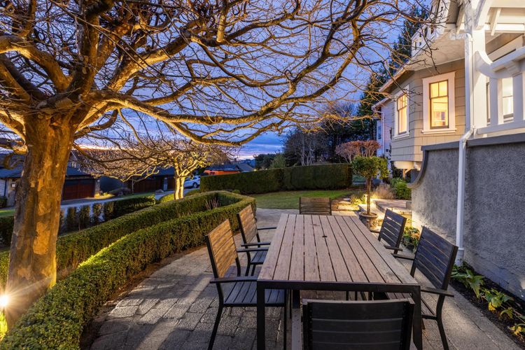 Welcome to 402 Brand. This meticulously maintained four-bedroom heritage home is a rare gem in a sought-after picturesque neighborhood. Timeless architecture blends seamlessly with modern updates, preserving classic character with today’s comforts. Enjoy sweeping city and water views from the main and upper levels—a stunning backdrop for everyday life. The chef’s kitchen—featured in Canadian House & Home—showcases a Sub-Zero fridge, Miele dishwasher, and Ultraline gas range with honed marble counters. Unwind in the principal soaker tub with city views or dine alfresco on the patio with integrated sound. The heritage-style two-car garage features 220V service and plumbing, offering prime potential for a studio or carriage house. Updated, charming, and irreplaceable.