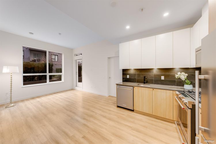 2 Bed + Den, 2 Bath home with 10 ft ceilings that shows like brand new. Features a huge 340 sq ft private fenced patio with hedges facing the quiet courtyard—perfect for young families or pet owners—with key access directly from the outside. Central heating and cooling are covered in the strata fee. Located in the Port & Mill complex built by reputable StreetSide Developments. Centrally located within walking distance to schools, SkyTrain, shops, parks, restaurants, and the YMCA. Building amenities include a fitness room, bike room, and a fully equipped kitchen with an entertaining area that extends to the central courtyard, garden, outdoor BBQ, children’s play area, and car wash station. Includes 1 parking stall right beside the elevator and 1 storage locker. Open Sat/Sun, March 7&8, 2-4