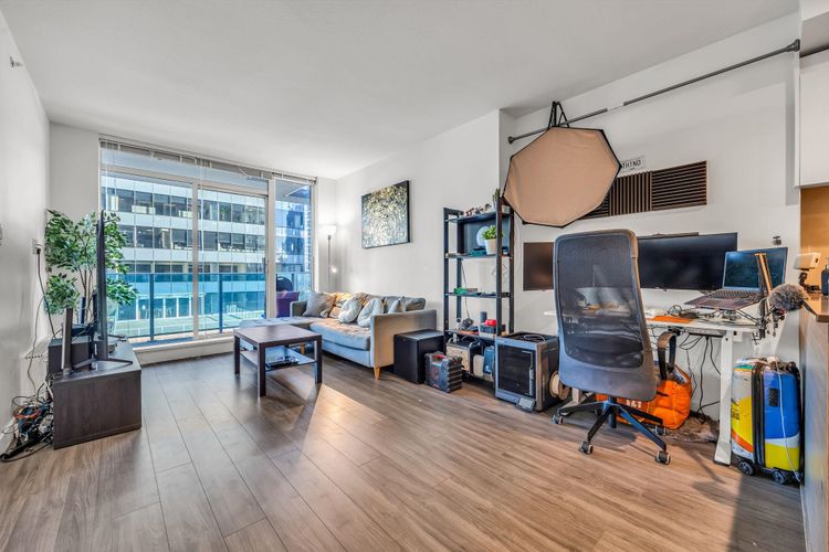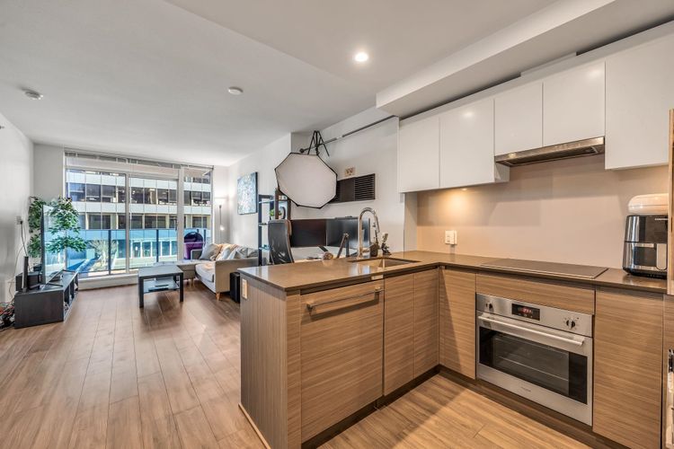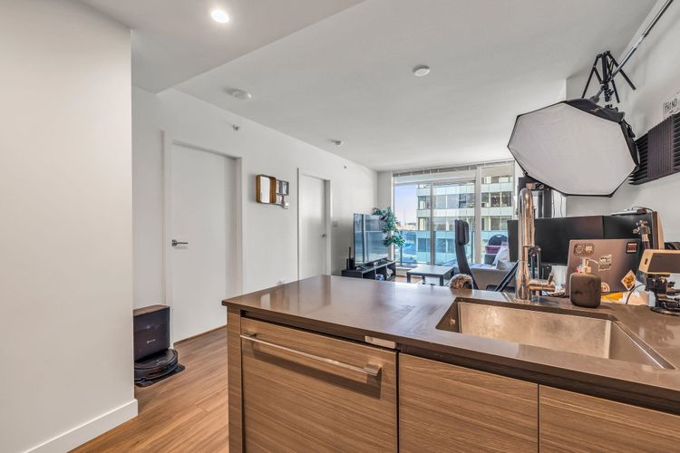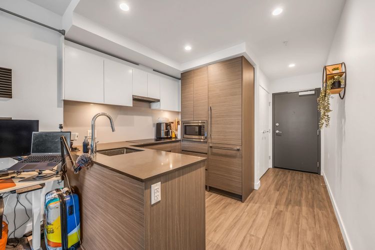 Bright modern 1 bedroom home at King George Hub One by award-winning PCI Developments, located in the heart of Surrey City Centre. This well designed home features an open concept layout with modern U-shaped kitchen, sleek cabinetry & integrated appliances. This smart floor plan maximizes every square foot, making it perfect for first time buyers, investors or professionals looking for convenience & style. Enjoy expansive windows, contemporary finishes & an extra wide balcony perfect for relaxing & entertaining. This home also comes with 1 secure parking stall & excellent building amenities including fitness centre, party room, rooftop lounge & more. Steps from the SkyTrain, Central City Mall, SFU Surrey, Surrey Memorial Hospital, restaurants, and everyday essentials.