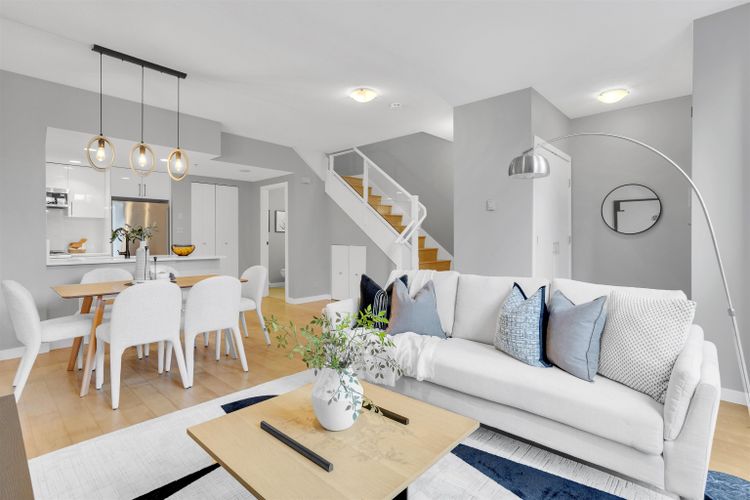 Rarely available PARK WEST townhouse in the prestigious Beach Crescent waterfront neighbourhood. This bright 2 level concrete corner home offers 1295 sq ft with 2 bedrooms plus a large den that can easily function as a third bedroom. Floor to ceiling windows provide excellent natural light and cross ventilation. Tastefully updated with new appliances, quartz counters, refreshed cabinetry, neutral paint and new lighting. Maple hardwood flooring throughout. Enjoy a private front entrance and a west facing garden patio perfect for relaxing or entertaining. Quiet mews location steps to the seawall, George Wainborn Park, shops, restaurants, Yaletown and Granville Island. Resort style living with 24 hour concierge and Club Viva featuring indoor pool, hot tub, sauna, gym and more. 1Pkg and Locker