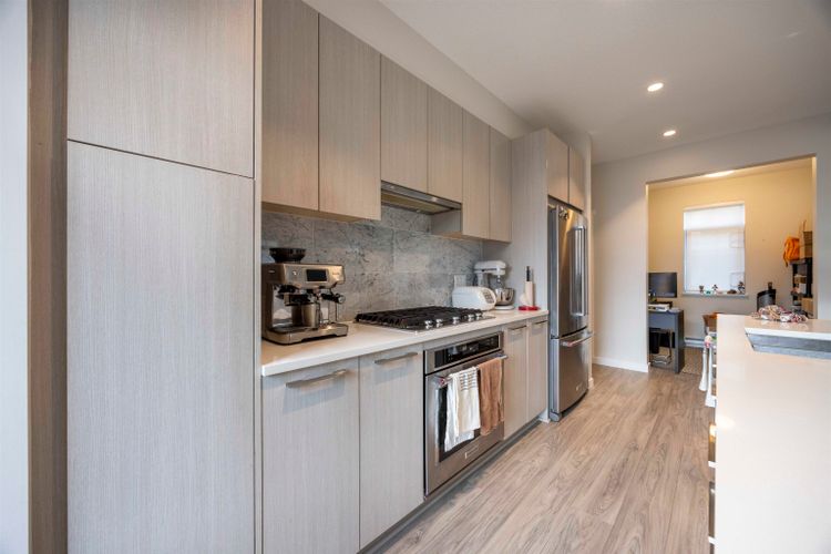 Welcome to BALLANTREE by Polygon, an exquisite 4-bedroom, 3.5-bathroom townhome nestled in the heart of nature on Burke Mountain. This spacious residence features soaring ceilings and a gourmet kitchen centered around a massive stone island, premium SS appliances, and a versatile flex den. Transition seamlessly from the dining area to your private deck for effortless entertaining. The upper level offers a convenient laundry room and three bedrooms, including a luxurious master retreat with a walk-in closet and a spa-inspired ensuite. The lower level provides a private suite with a full bath and walk-in closet—ideal for guests or in-laws. Complete with a side-by-side double garage featuring an EV charger. Experience modern mountain living at its finest. Call today!