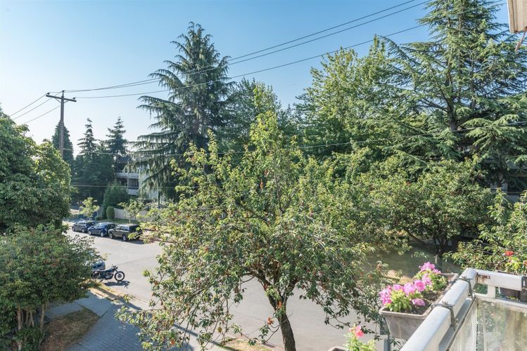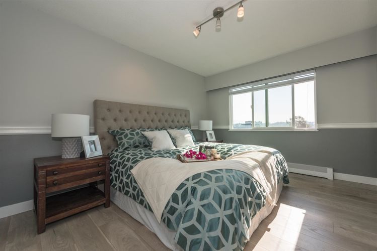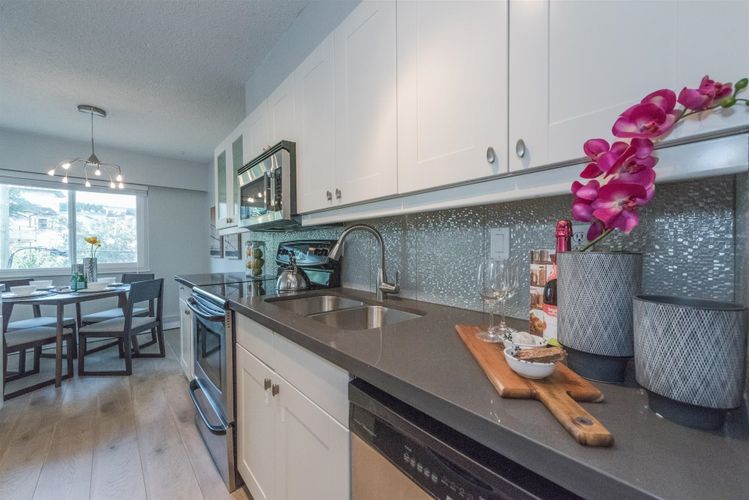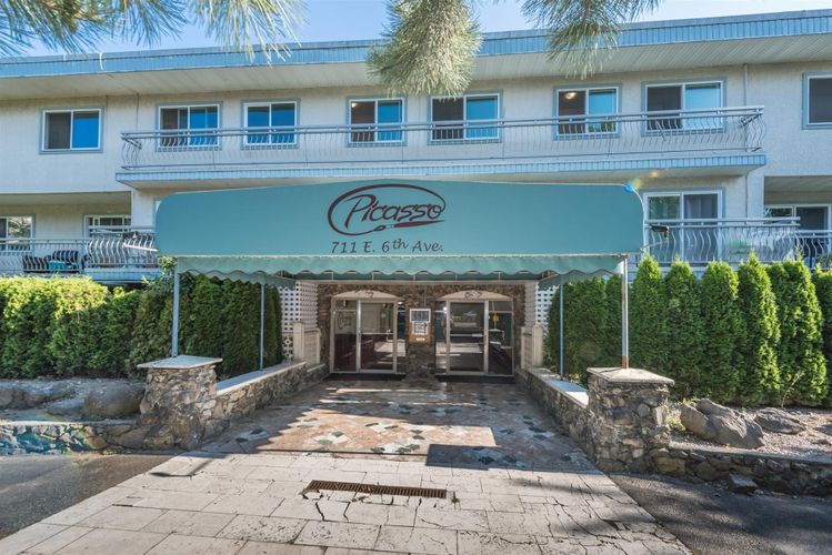 Rarely available corner penthouse that is truly turn-key. Southeast-facing with a wraparound balcony and northern mountain views, this bright and spacious home features a functional open-concept layout with two generous bedrooms, a large living room, and a proper dining area. Tastefully renovated with laminate flooring, kitchen tile, quartz countertops, stainless steel appliances, an updated bathroom, and fresh paint throughout. Includes one storage locker and one parking stall. Pet- and rental-friendly building with a proactive strata. Major updates include roof (2001), piping (2000), boiler (2009), and windows/sliding doors (2012). Currently tenanted at $2,800/month; tenant leaving May 1, 2026. Open House: March 22, 2–4 PM.