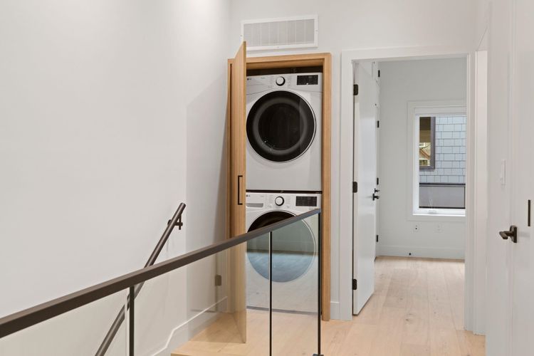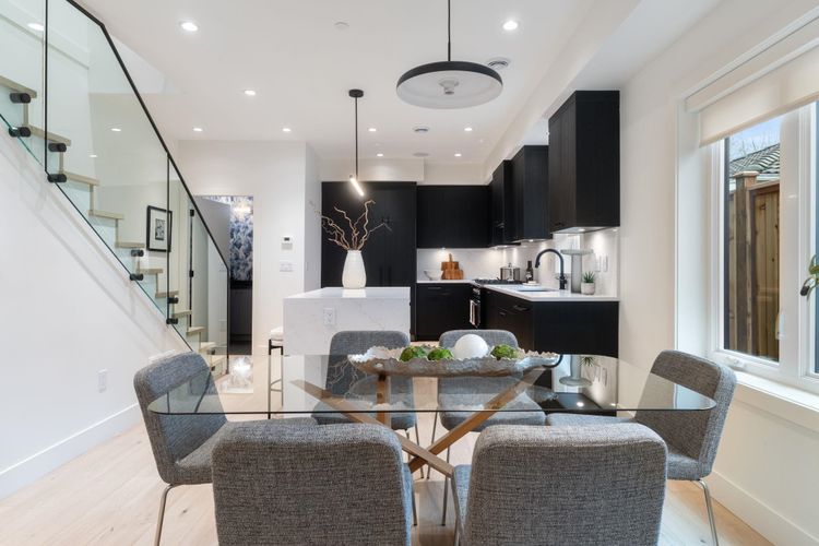 Welcome to The Grant Collection, an exclusive new development on a quiet, tree-lined street in one of East Van’s most beloved family friendly communities. Developed by a longstanding local builder Fina Homes, known for quality craftsmanship and sophisticated interiors. Enter through a fenced yard & patio to this well-appointed & thoughtfully planned 2 level home, ideal for downsizers seeking fewer stairs or young families ready to put down roots. The main is a spacious open plan with a generous living space, dining area and a modern chefs kitchen with integrated Fisher & Paykel appliances, gas range & a island with bar seating. Upstairs has the laundry, 3 bedrooms and 2 bathrooms including the primary retreat with a stylish ensuite and private 227 sqft sun deck. Come see!