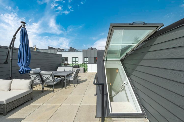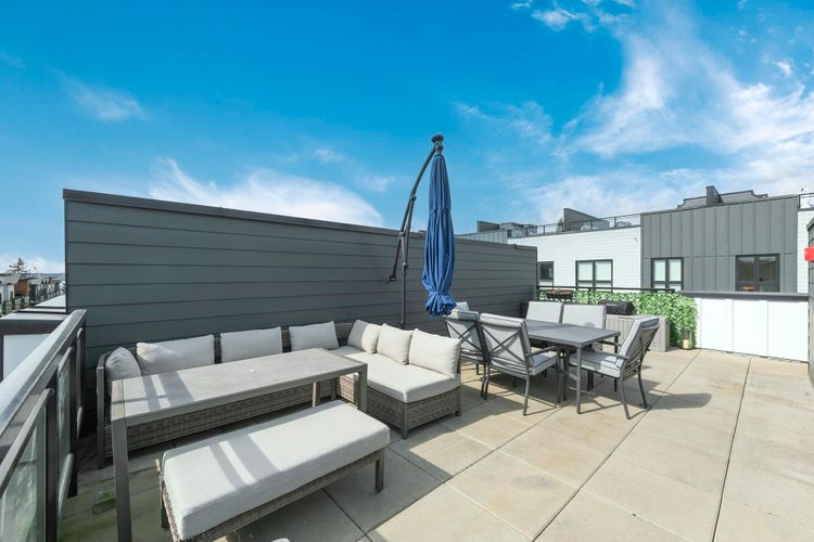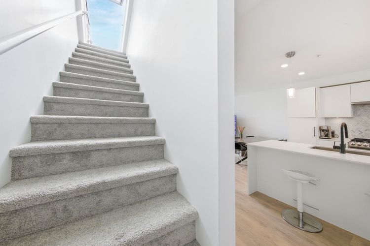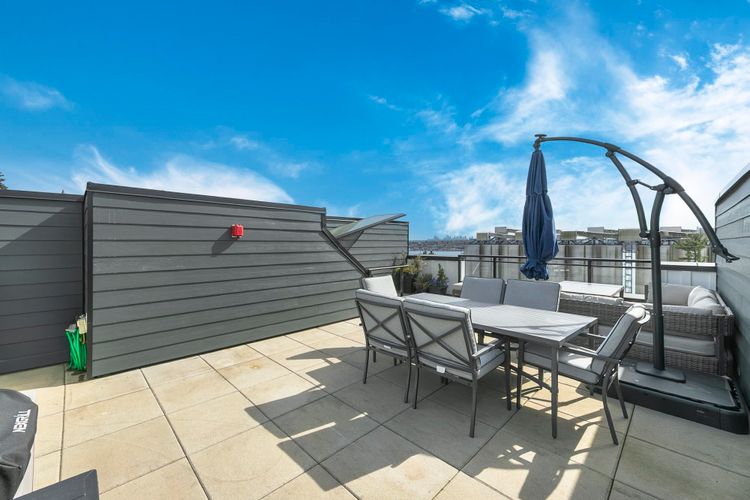 Bright, spacious 3 bed, 3 bath townhome at The Trails in Moodyville with a huge 450 sq ft private rooftop patio offering stunning 360° views of the city, ocean, and North Shore mountains. Built in 2024 and meticulously maintained, this south-facing home shows like new and includes remaining 5/10 warranty. Thoughtful floor plan with excellent bedroom separation. Features wide-plank flooring, high ceilings, radiant in-floor heating, large windows, and a modern kitchen with Samsung Smart Hub appliances. Includes 1 parking and double storage locker. Steps to Lonsdale Quay, Moodyville Park, Spirit Trail, shops, and dining. Easy to show!
