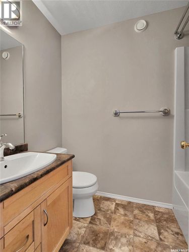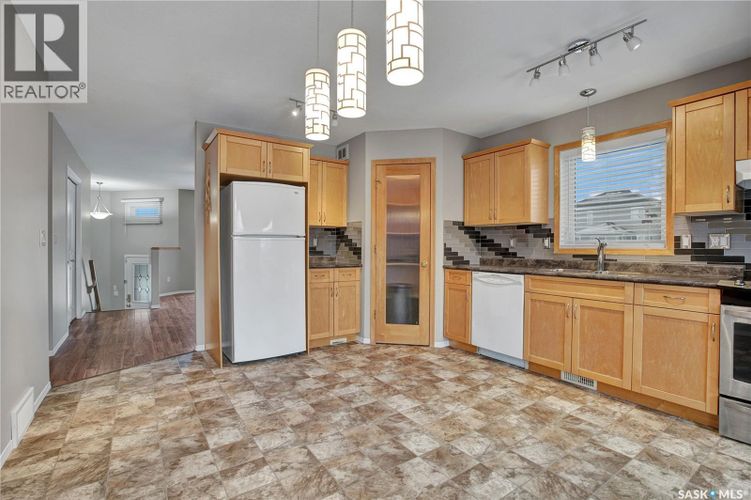 Check out this great family home in a court location in Hampton Village! This Fraser built fully developed 1203 sq. ft Bi level house is located in a court location . This family home offers 3 plus 1 bedroom and 3 bathrooms . The main floor has just been freshly painted in modern tones. The country style kitchen has a large corner walk in pantry and tiled back splash. You will have lots of space for a larger dining room table. Off the kitchen is a door to the deck overlooking the fully fenced backyard. The Primary bedroom features a walk in closet & a 4 piece bathroom. On the main level there are also 2 additional good sized bedrooms. The fully developed basement is only a few years old. It was built with extra ceiling insulation to provide excellent sound barriers between the floors. You will love the built in home audio system in this bright and spacious lower level. The basement bedroom features brand new vinyl plank flooring. Adjacent to the bedroom is a 3 piece bathroom, den and a large entertainment-family room. All TV mounts stay. This basement has large window and room for an additional bedroom is need be. The den area was previously intended for a sauna but would make a great gym , work out area or kids play room. Under the stairs you will find extra storage. The utility-laundry room have a Heat recovery ventilation unit to control humidity and provide fresh air to the home. The furnace and water tank are high efficiency with the water tank being one year old. There is a double attached direct entry garage, that is insulated, boarded and heated. It also has shelving and its size should accommodate most trucks. This area is close to parks, shopping and elementary schools and has convenient access to the North Industrial area. Home is virtually stage. Call your favourite Saskatoon agent today to arrange your personal viewing. (id:26452)