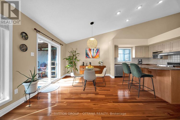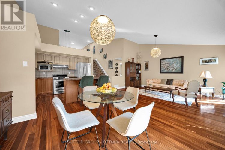 Welcome to 128 Annapolis Circle, a unique bungaloft in the heart of Hunt Club East! This home has so much to love, starting with its unbeatable setting, no direct rear neighbours and a backyard that's truly a gardeners dream, filled with perennials, mature trees, David Austin roses, peonies, and more, all carefully maintained by its long term owners. Step inside and you'll find an open-concept kitchen, dining, and living space, the true heart of the home, designed for gatherings big and small. Dramatic sloped and cathedral ceilings create an airy, architectural feel, while southwest-facing windows and a patio door flood the main level with natural light. Off the back, a cozy covered porch lets you enjoy your outdoor space without the company of bugsarguably the best feature in Ottawa summers! The main floor offers two generous bedrooms, including a rear retreat with soaring ceilings and views of the lush garden. Upstairs, the loft level feels like your own private floor, complete with a spacious bedroom, 5-piece ensuite, and a versatile open area perfect for a workspace, dressing table, or even a Pilates corner. The basement adds even more living potential with 9-foot ceilings in the main areas, a full bathroom, and loads of space to customize to your lifestyle. With privacy, charm, and a backyard paradise, this home is a rare find and a perfect match for anyone who wants something a little out of the ordinary. AC & Furnace 2025 (id:26452)