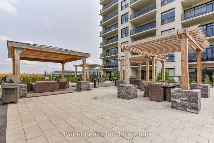 Welcome to Suite 501, a perfectly appointed one-bedroom plus den unit spanning 951 square feet on the fifth level of the acclaimed River Mill Condominiums. This refined space has been meticulously finished to the highest standard, starting with the flow of engineered hardwood throughout the bright, open layout. The centerpiece is the living room's sleek stone electric fireplace, complemented by the stunning chef's space a kitchen featuring premium stainless steel appliances, substantial granite countertops, and designer valance lighting. The highly versatile den provides ideal flexibility for a work-from-home setup or a private reading nook. Retire to the bedroom and start your day in the beautifully designed, spa-like washroom. A dedicated Locker and secure underground parking space are included, ensuring seamless downtown living. The building's amenities redefine luxury. Socialize in the 7th-floor lounge or on the magnificent rooftop terrace (over 4,000 sq. ft.) with BBQs and dining areas. For quiet moments, explore the vast 12,000 sq. ft. garden terrace or utilize the library and media room. Keep fit in the state-of-the-art fitness center. Connectivity couldn't be better. Everything is at your doorstep: riverside paths, the city's best restaurants and shopping, and immediate access to the GO train and bus transit hub. Enjoy predictable monthly budgeting, as the condo fee generously covers heating, cooling, and water. (id:26452)