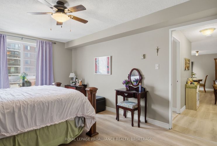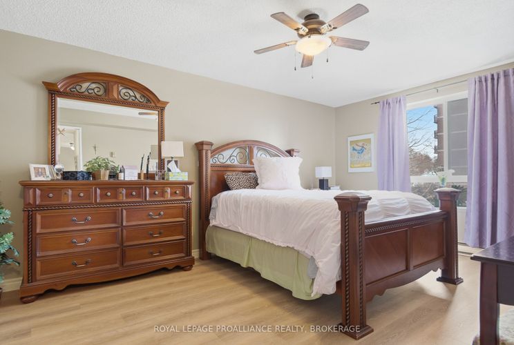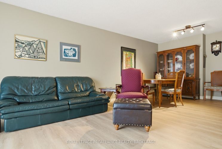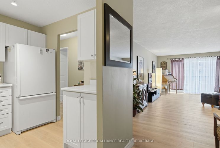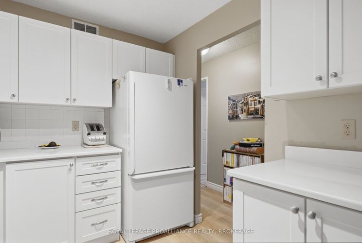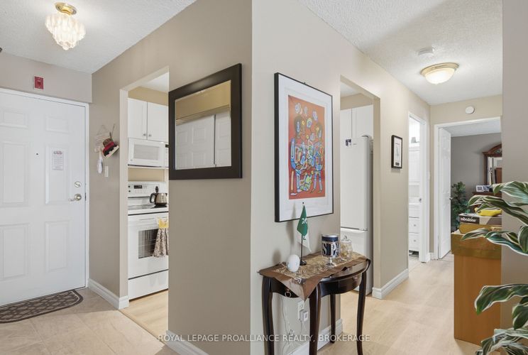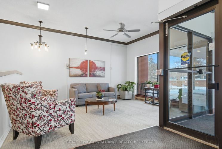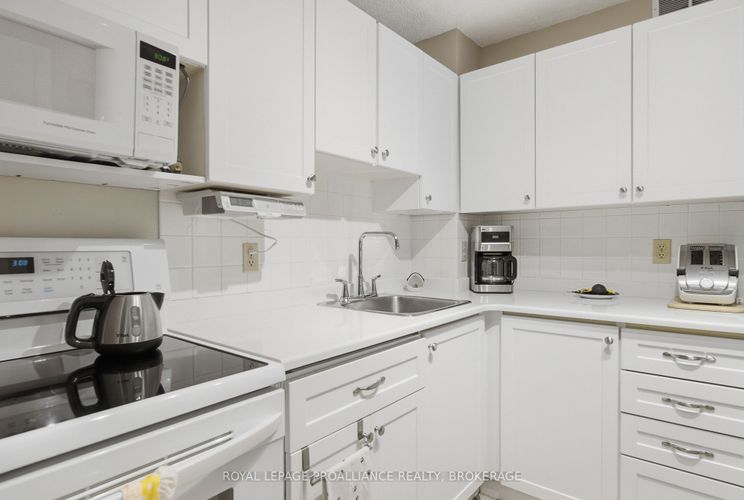 Welcome to your next chapter in one of Kingston's most conveniently located neighborhoods. This bright and inviting two-bedroom, one-bathroom condo offers 1,056 square feet of thoughtfully designed living space that punches well above its weight, freshly renovated in 2025 to shine like new. Step inside to discover brand new luxury vinyl plank flooring flowing throughout, complemented by elegant marble window sills and tasteful tile in the entry and bathroom. The stunning new kitchen features quartz countertops and all appliances are included, making it truly move-in ready. Large open concept dining and living area, flooded with natural light, leads seamlessly to a spacious balcony through a brand new patio door system installed in 2024. A generous walk-in closet and in-unit storage along with common storage area keeps life organized. The in-unit storage room also features laundry hookups (not currently used, potential restoration subject to condo board approval). Building amenities rival those of a boutique resort - think outdoor swimming pool, library lounge, exercise equipment area, games room, bike storage, elevator and secure entry with dedicated parking plus guest parking. Location truly steals the show here. Steps from public transit, Frontenac Mall, parks, and the prestigious Cataraqui Golf and Country Club, you're also just minutes from beautiful Lake Ontario Park, downtown Kingston, Queen's University, and local hospitals. Don't let this one slip away - book your private tour today and see why this condo listing won't last long.