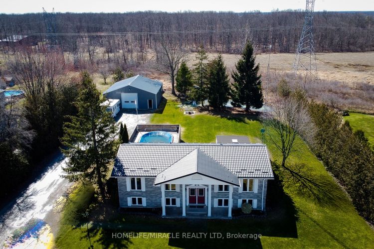 Welcome to this beautifully renovated country retreat, perfectly situated on a spacious and private lot surrounded by mature trees and open green space. This charming home offers the ideal blend of modern updates and peaceful outdoor living. Inside, the home has been completely renovated and showcases a bright, open-concept kitchen featuring quartz countertops, stainless steel appliances, a stylish backsplash, pot lights, and durable tiled flooring. The inviting living area offers rich hardwood floors, a cozy gas fireplace, and additional pot lighting, creating a warm and welcoming space for everyday living and entertaining. The main level is thoughtfully designed with two full bathrooms for added convenience. The lower level features large above-grade windows that bring in natural light, new carpeting throughout, and two generously sized bedrooms-perfect for family, guests, or a home office setup. Step outside to enjoy your own private backyard oasis. A large deck spans the entire back of the home, ideal for entertaining or relaxing while overlooking the expansive yard. The above-ground swimming pool is ready for summer enjoyment. Adding incredible value is the impressive 40 x 40 detached garage/workshop, fully spray-foamed and equipped with Propane Furnace perfect for hobbyists, car enthusiasts, or a year-round workspace. The long driveway and additional outdoor space provide ample parking for vehicles, trailers, or recreational equipment. With its wide-open surroundings, mature landscaping, and versatile outbuilding, this property offers the perfect balance of comfort, functionality, and country charm-all while still being within easy reach of nearby amenities.
